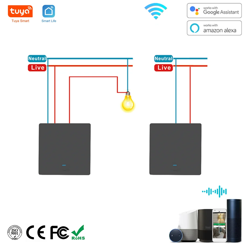 Tuya Интеллектуальный переключатель Wi-Fi Двухсторонние настенные Панель для Smart Home приложение дистанционного Управление Великобритании ЕС Стандартный работать с Alexa Google Home