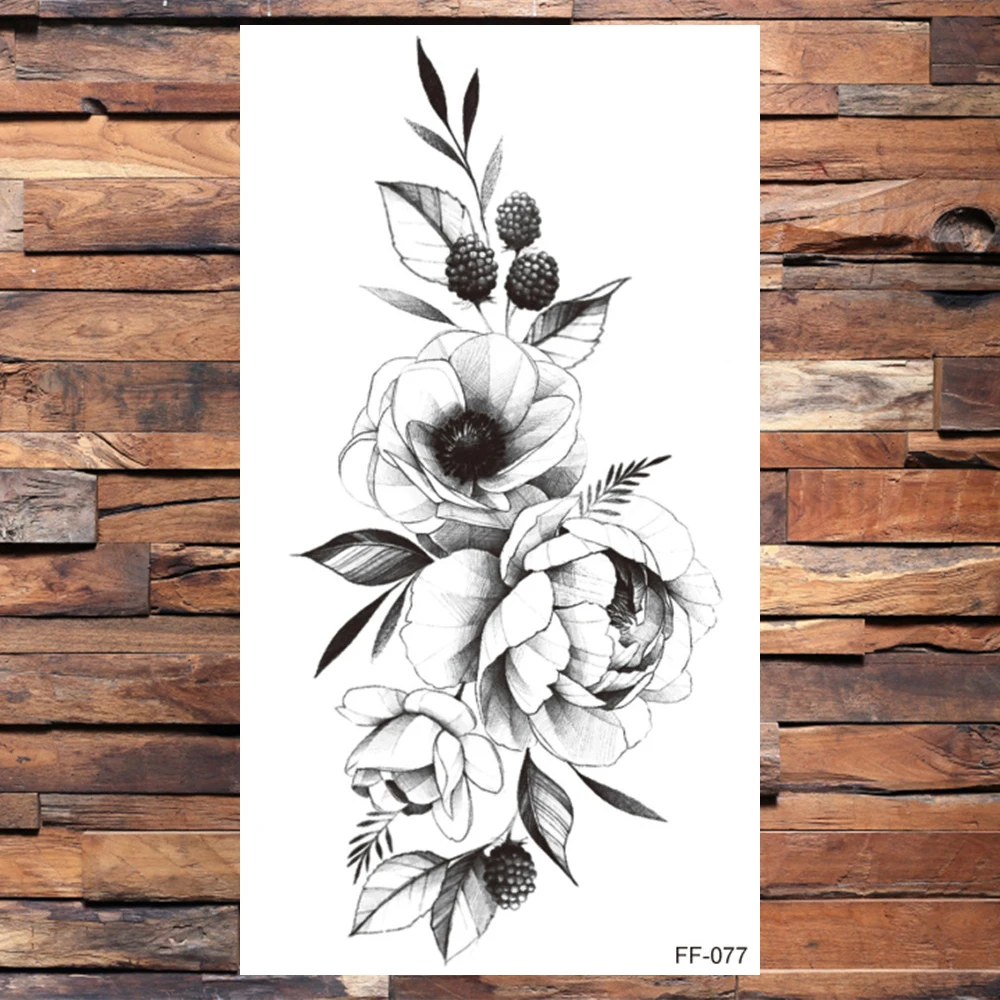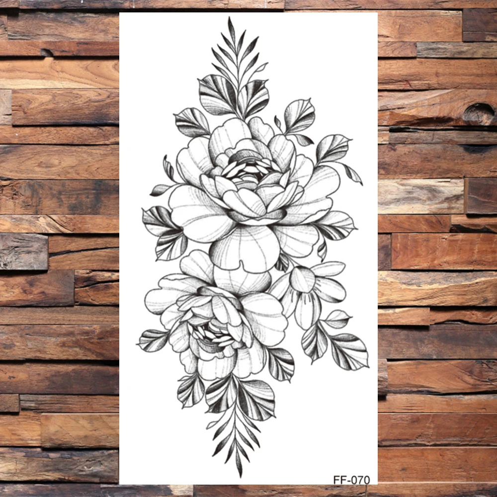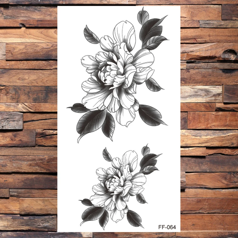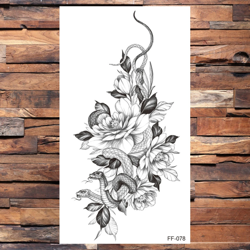 3D змея Цветок временная татуировка для женщин черный пион поддельные татуировки наклейка рисунок ветка лилии водостойкая татуировка для тела руки назад