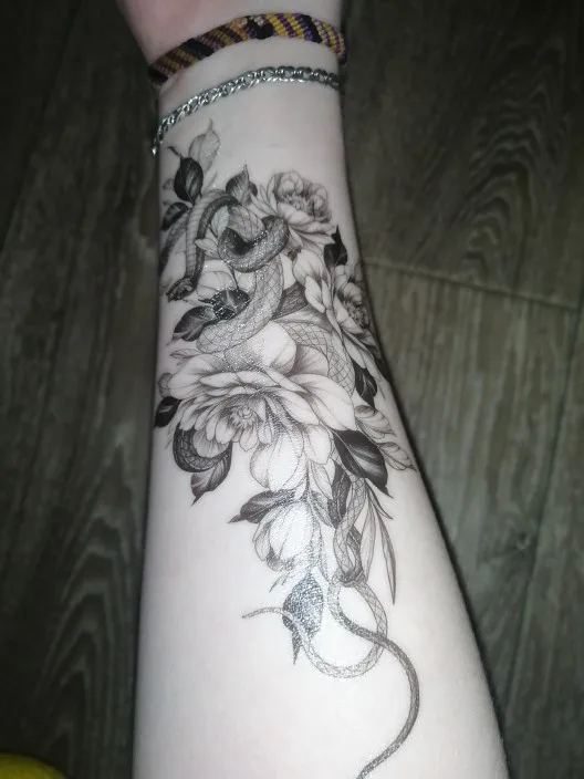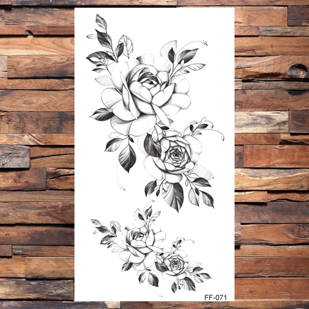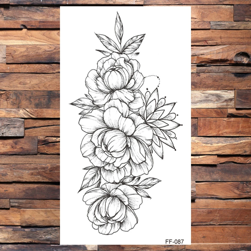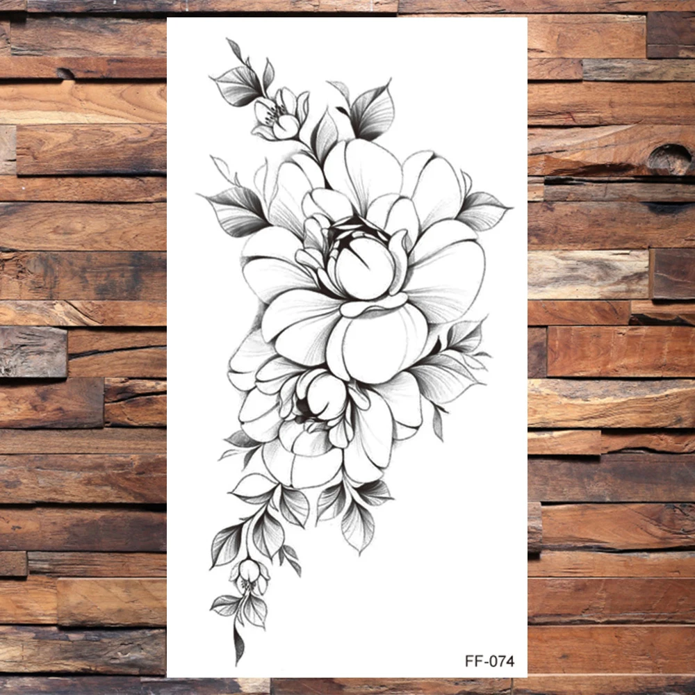 3D змея Цветок временная татуировка для женщин черный пион поддельные татуировки наклейка рисунок ветка лилии водостойкая татуировка для тела руки назад