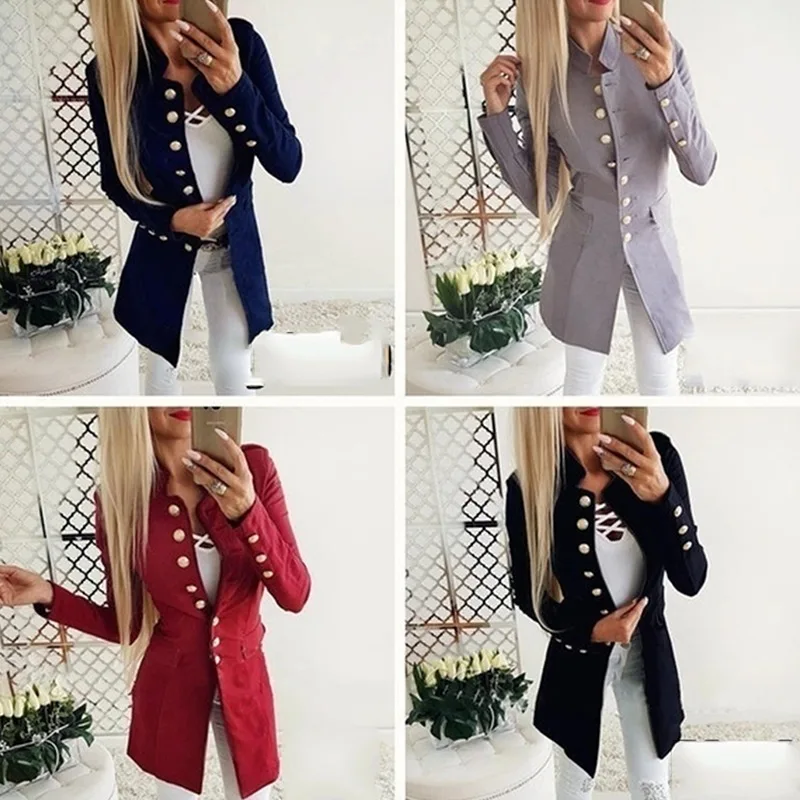 Женский Повседневный однобортный пиджак, длинный пиджак с карманами...