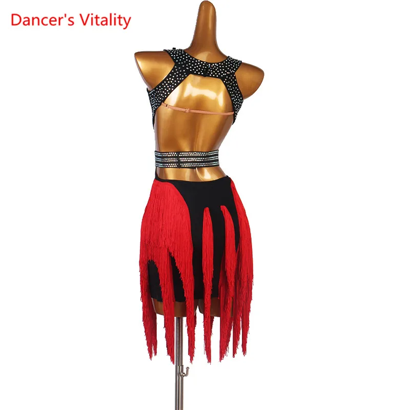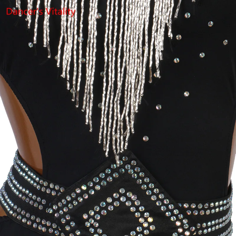 Платье для латинских танцев, юбка с бриллиантами и кисточками, одеж...