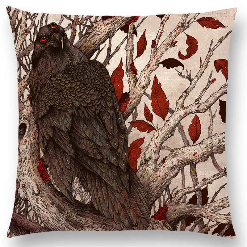 Чехол для диванной подушки с тремя глазами и вороном, темная магия,...