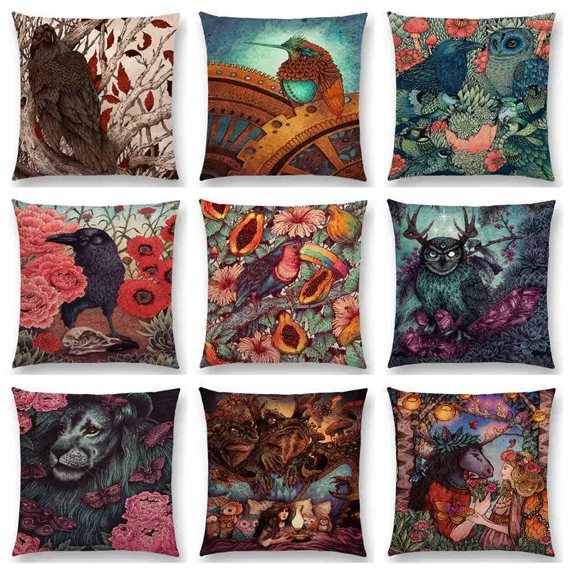 Чехол на подушку с изображением темных волшебных цветов и птиц, три ворона, стимпанк, колибри