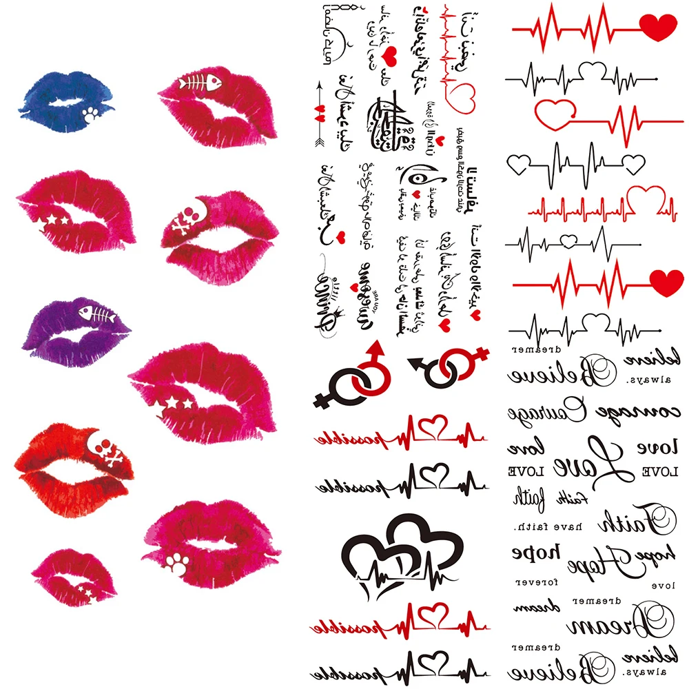 Сексуальные цветные губы, временные татуировки для женщин, любовь, графика, искусственная татуировка, наклейка, черные слова, творческие, веселые, Искусственные лодыжки, бедра