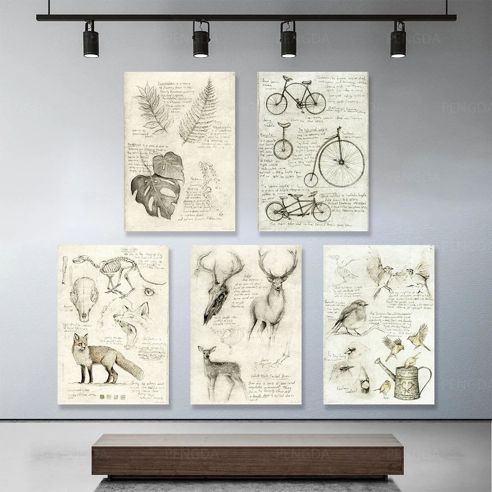 Картина на холсте с изображением животных и велосипедной конструкции, настенное художественное изображение, постер с Модульная картина для гостиной