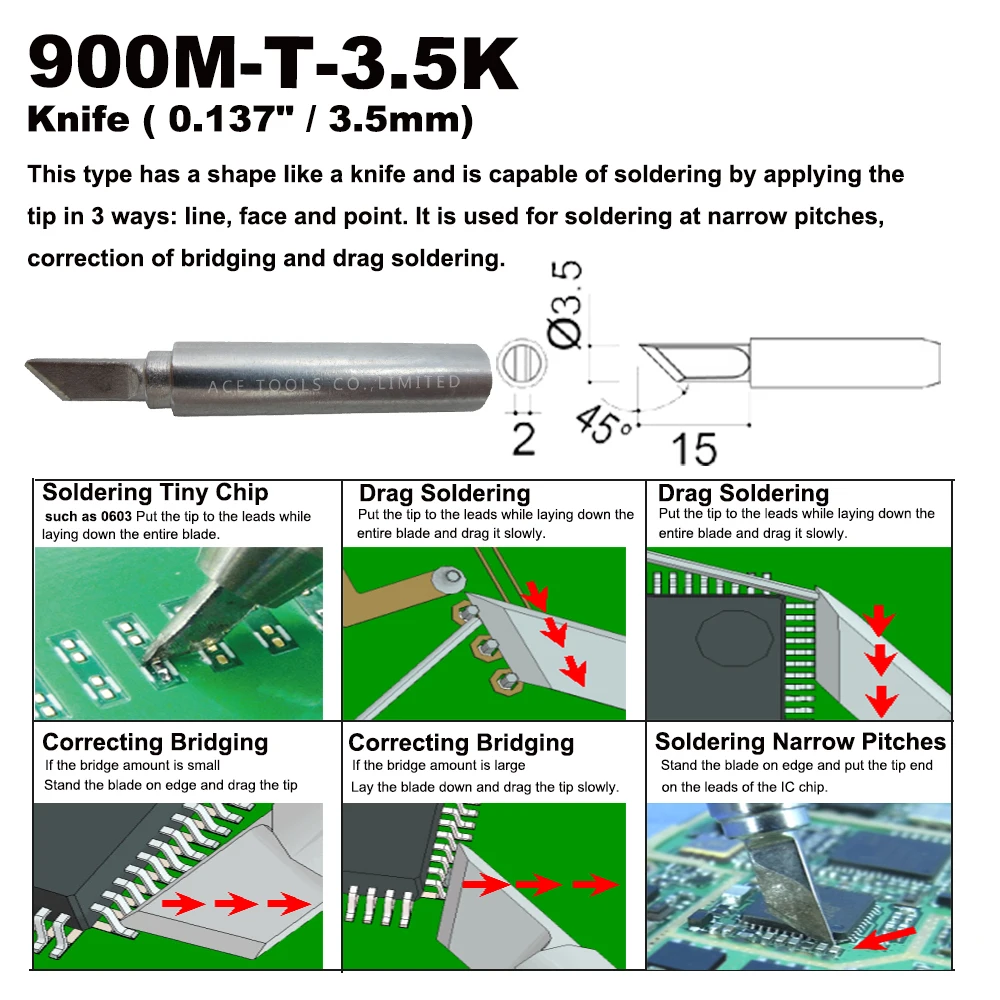 Наконечник для паяльника 900M-T-3.5K, нож 3,5 мм для Hakko 936 907, флейта Milwaukee, 64-053 Yihua 936 X-Tronics 3020, железный наконечник