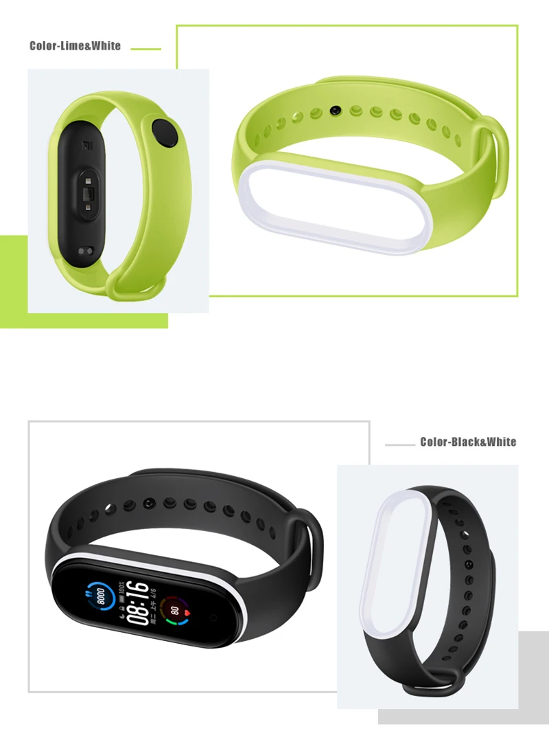 Сменный силиконовый ремешок для Mi Band 5, двухцветный браслет для умного браслета Xiaomi Mi5