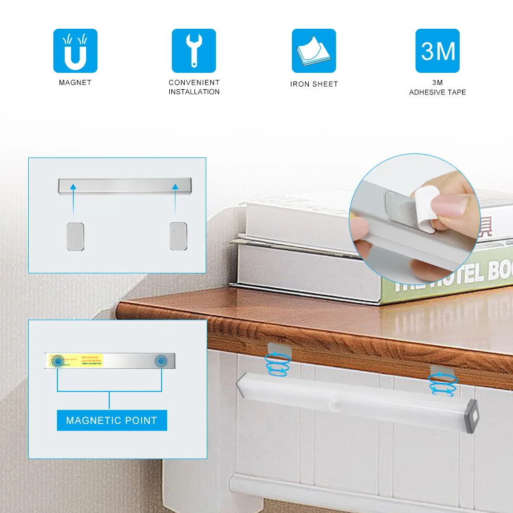 Светильник для шкафа, 14 дюймов, 20 светодиодный, с зарядкой по USB, магнитная полоса, Ночной светильник с датчиком движения для кухни, спальни, дома