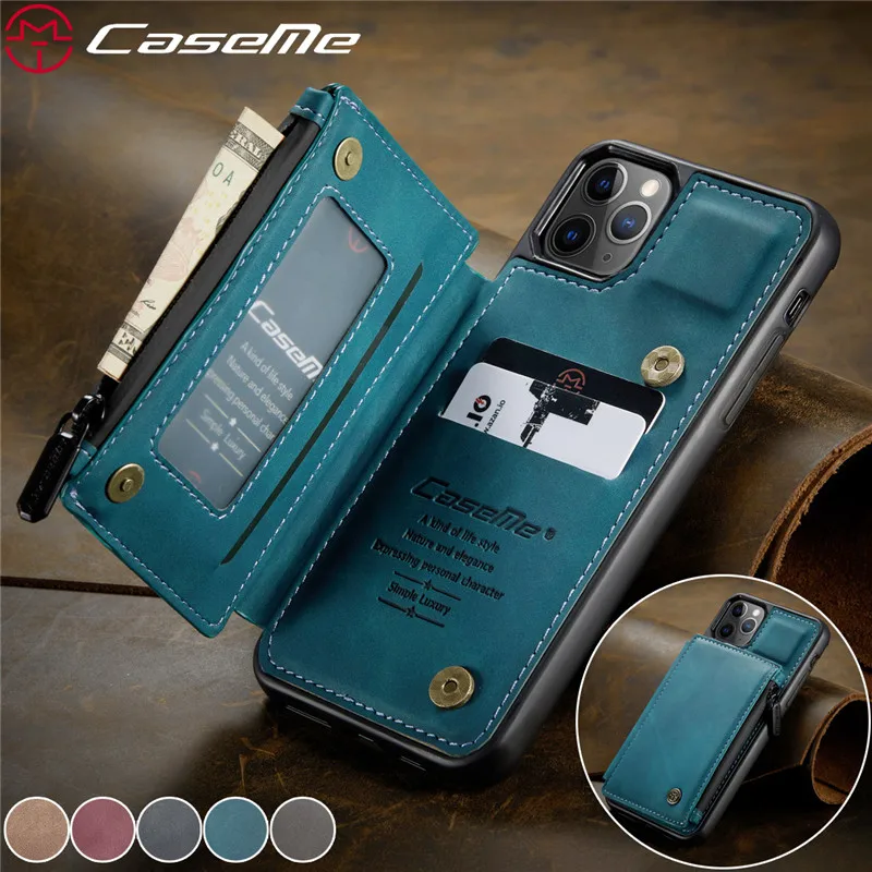 Кожаный чехол для телефона iPhone 11, 13, 12 Pro, XS Max, XR, X, 7, 8 Plus, чехол-бумажник на молнии для Samsung Note 20, 10, S21, S20 Ultra Coque