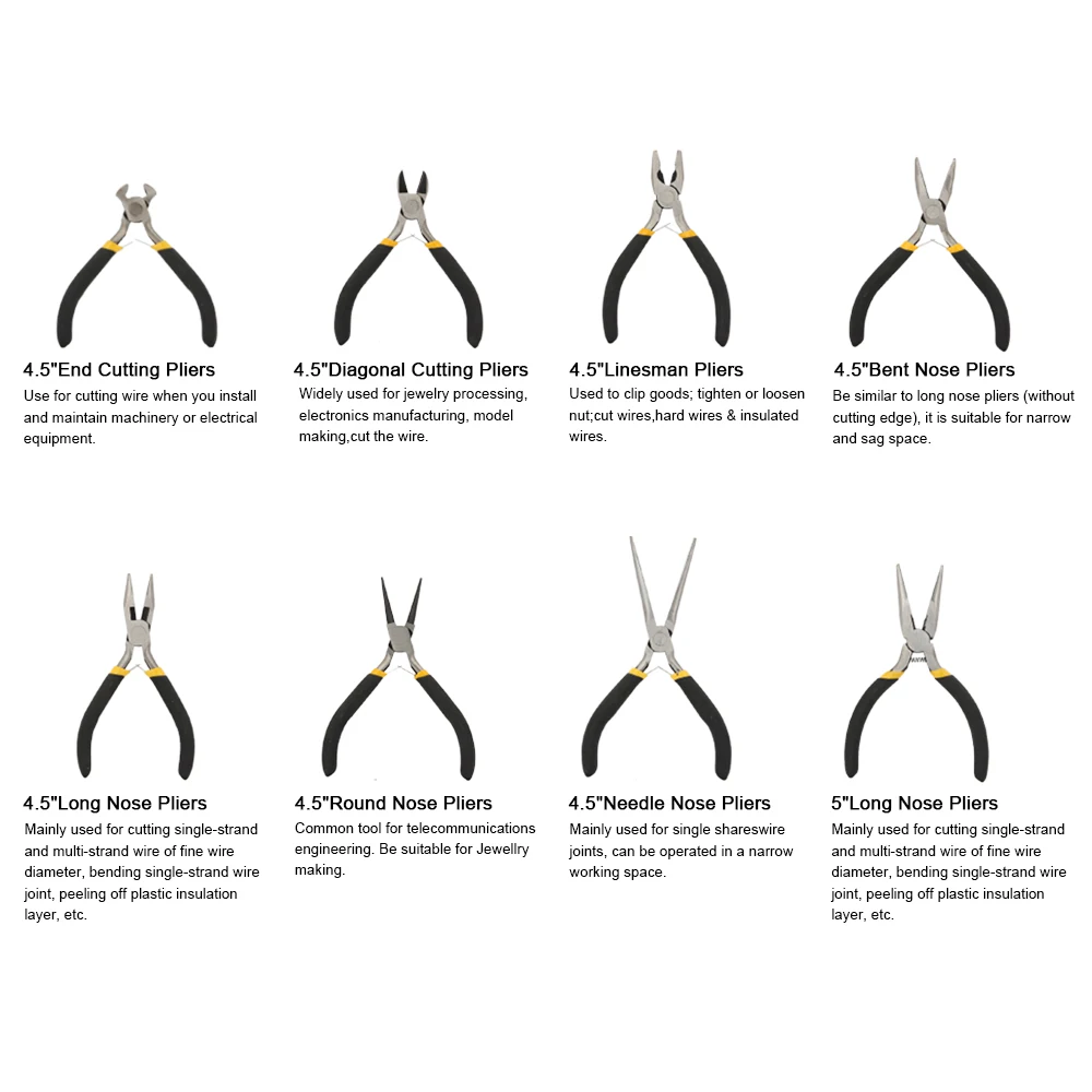 Senzeal плоскогубцы Набор инструментов для домашнего и автомобильного ремонта (плоскогубцы, Длинногубцы, Острогубцы, диагональные кусачки, торцевые кусачки, изогнутые плоскогубцы, круглогубцы)