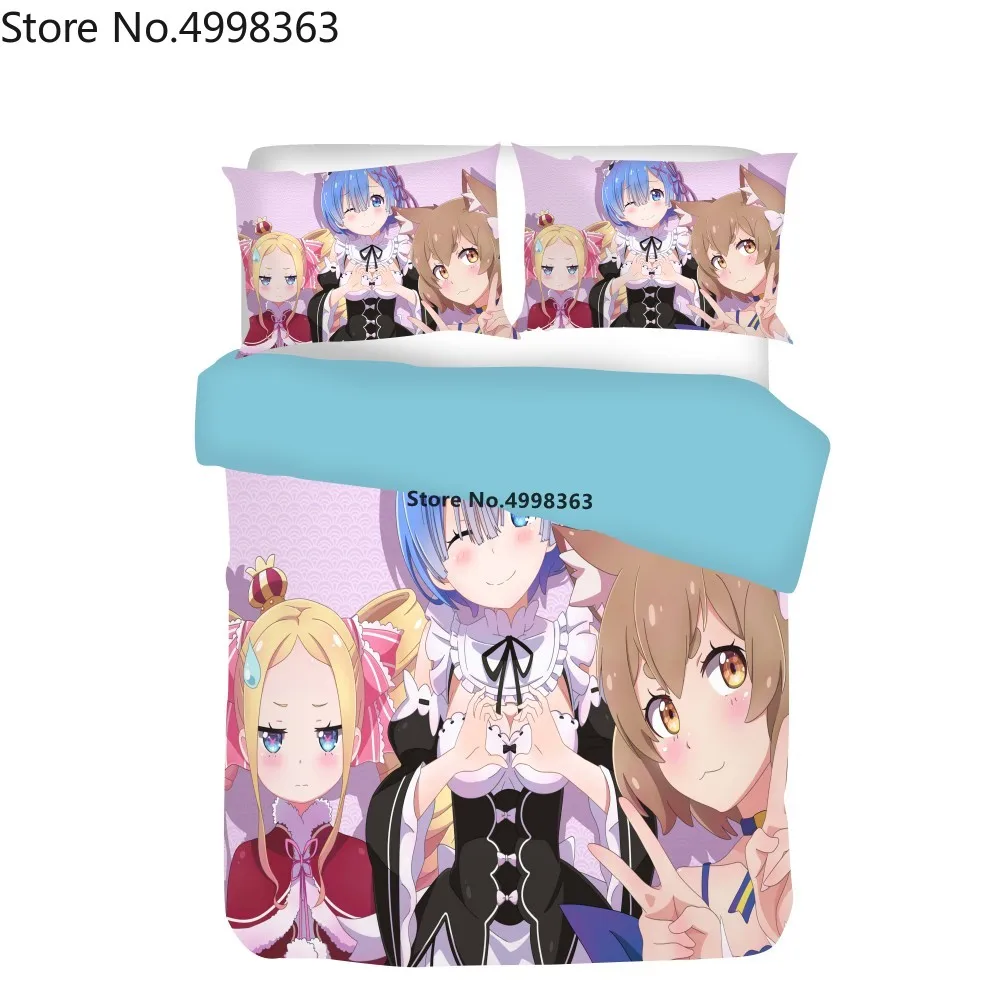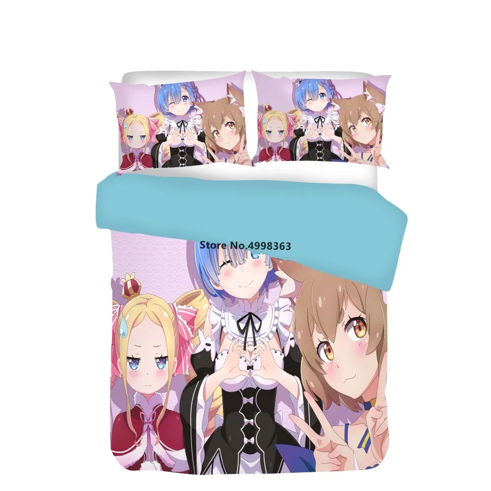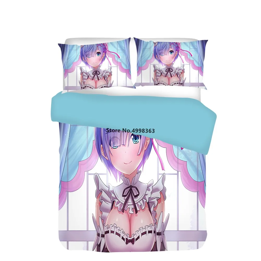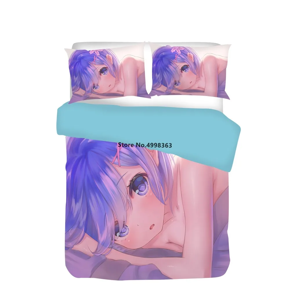 Мультяшный Комплект постельного белья Re:Zero, начинающий жизнь в другом мире, пододеяльник, сексуальный комплект постельного белья, двойной полный размер, 2/3 шт.