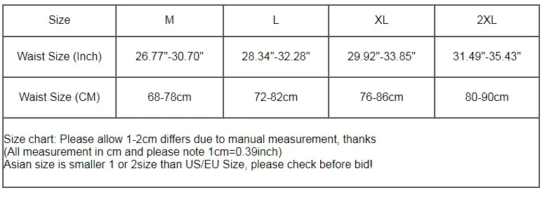 М L XL 2XL Размер талии (дюймы) 26,77-30,70 дюйма 28,34-32,28 дюйма 29,92-33,85 дюйма 31,49-35,43 дюйма Размер талии (см) 68-78 см 72-82 см 76-86 см 80-90 см Таблица размеров: замеры сделаны вручную, поэтому возможны отклонения на 1-2 см. (Все измерения указаны в см, обратите внимание, что 1 см = 0,39 дюйма) Азиатский размер меньше на 1 или 2 размера, чем размер США/ЕС, пожалуйста, проверьте перед покупкой!Наименование товара:Мужские стринги и G-стринги, сексуальное мужское нижнее белье, трусы, трусы, мужские бикини, трусы