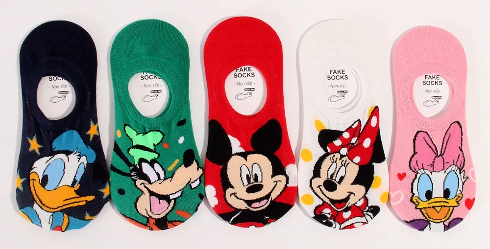 Короткие носки, тапочки с мультипликационным рисунком, незаметные женские носки, женские нескользящие носки, носки, мышь, Meias, уличные короткие носки