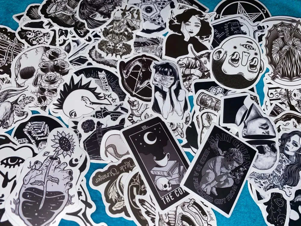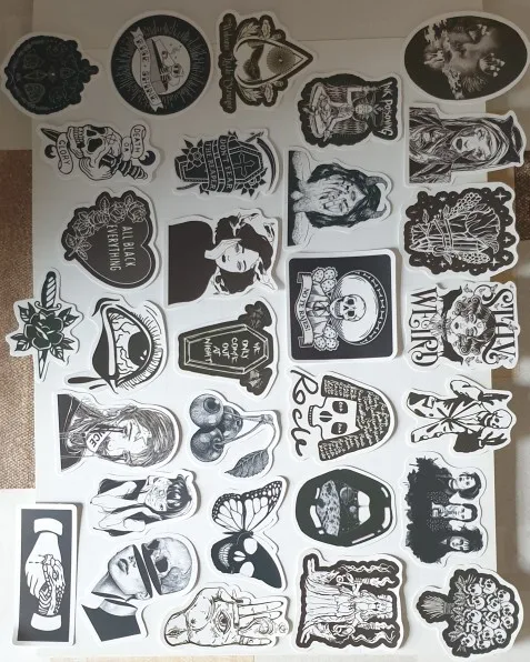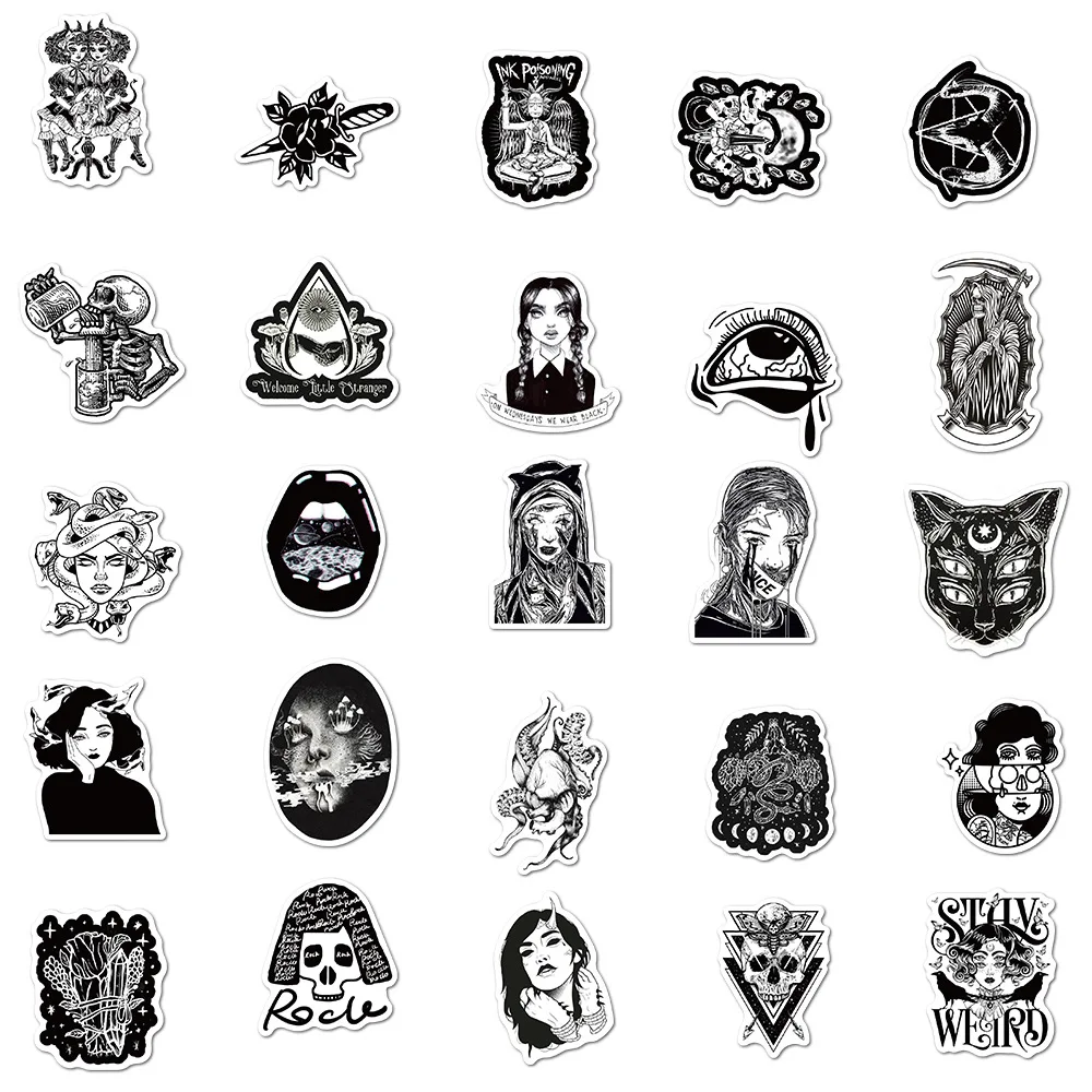 Наклейки для ноутбука, скейтборда, автомобиля, 100, страшная наклейка, 1050наклейки-заплатки шт., черные, белые, в готическом стиле, водонепроницаемые, для подростков, детей