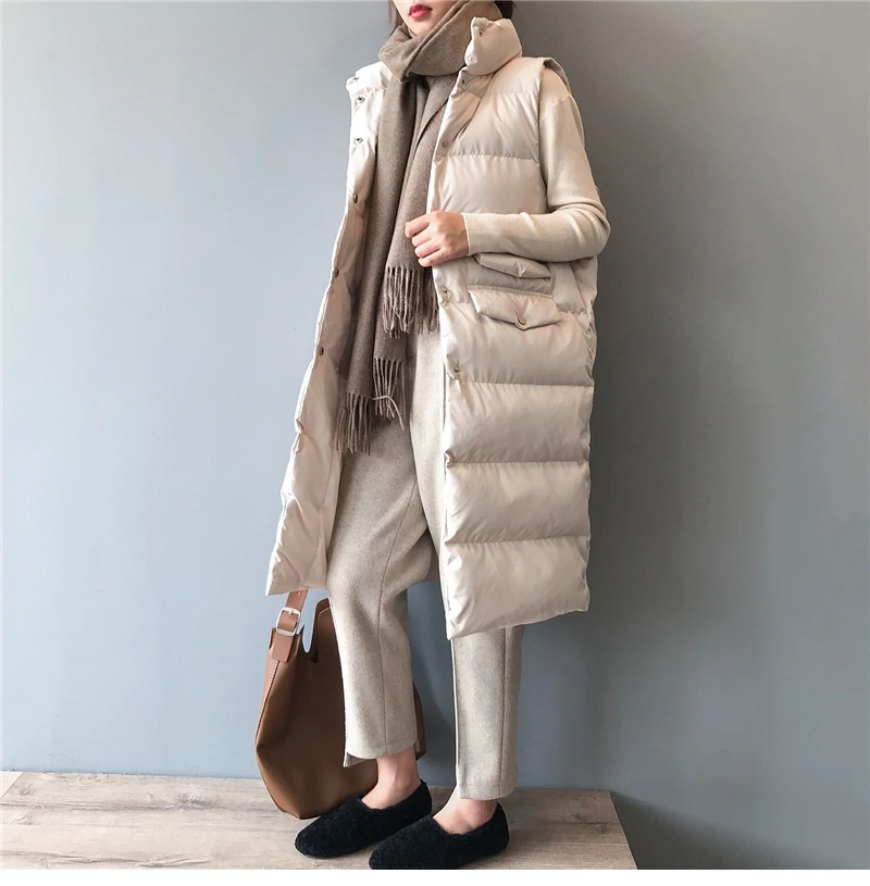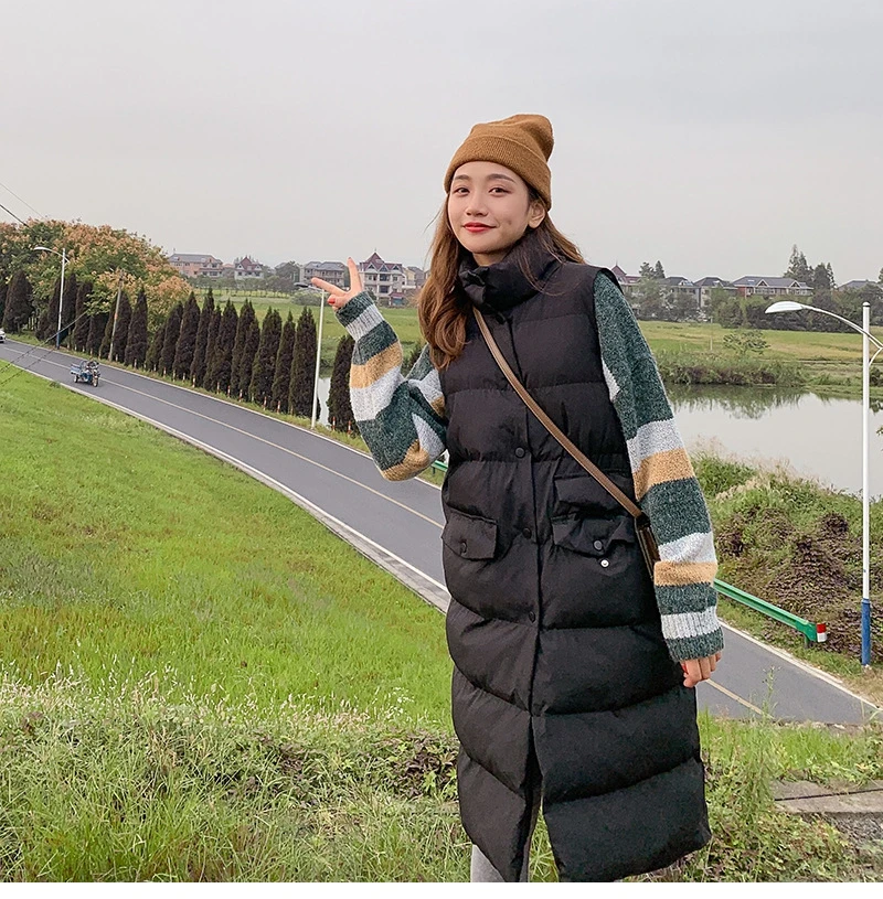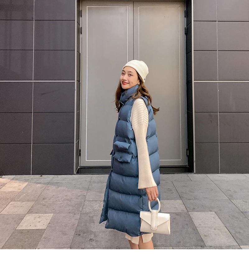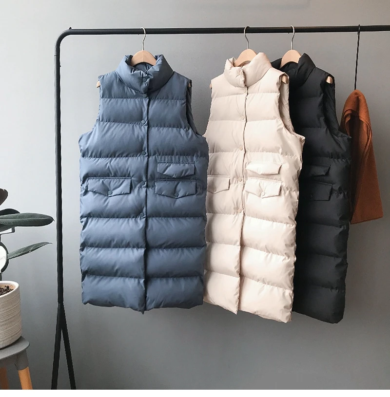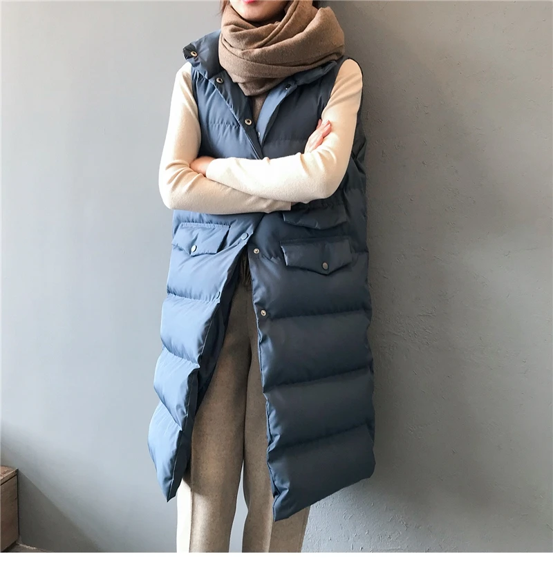 Осенне-зимний длинный жилет, Женская хлопковая куртка без рукавов, ...