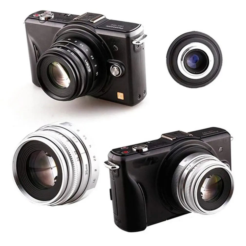 Характеристики:Цвет: черный, серебристыйФокусное расстояние объектива: 35 ммМаксимальная диафрагма: 1,6Минимальная диафрагма: 16Диафрагма: ручнаяФокус: ручнойИскажение: менее 5%Самый дальний фокус: бесконечныйСамая близкая Фокусировка: 30 смУгол съемки: 18 градусовОптическая структура: 4 группа 4Покрытие линз: многослойное покрытие MCЛезвия диафрагмы: 12
