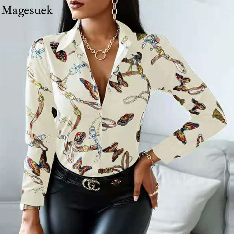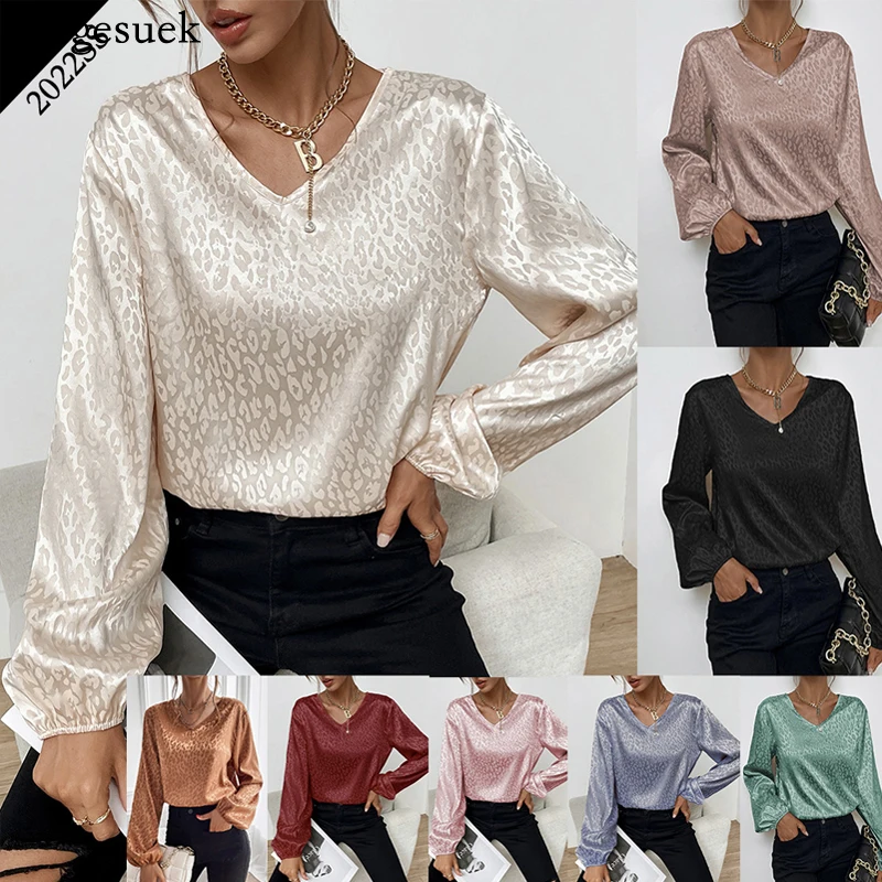 Блузка женская из искусственного шелка, элегантная уличная рубашка с V-образным вырезом, модная из атласа с длинным рукавом винтажная блузка, 2020 50, весна 5273