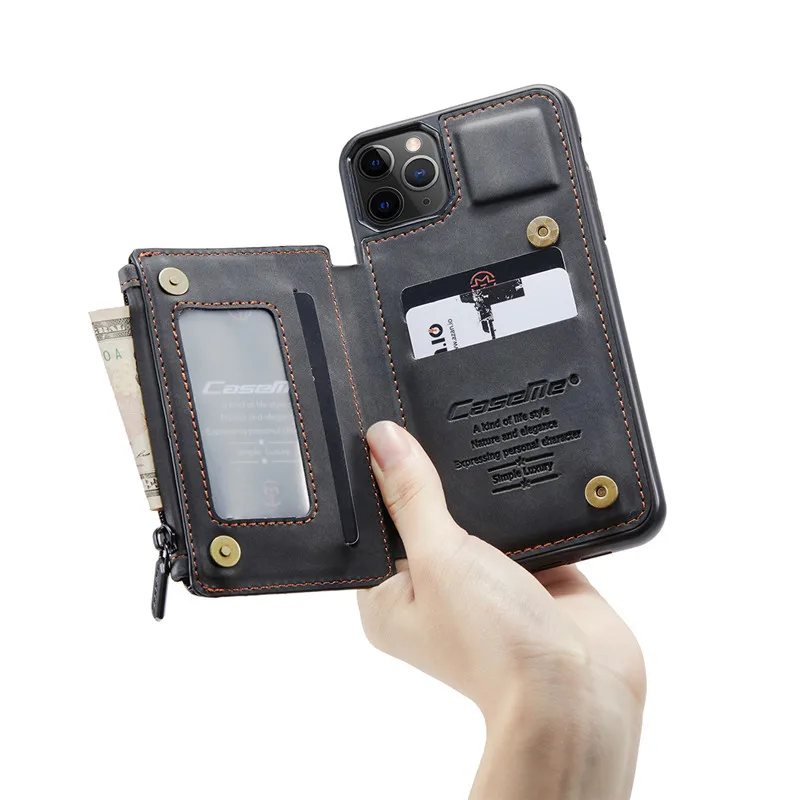 Кожаный чехол для iPhone 12 11 Pro XS Max XR 8 7 Plus, чехол-кошелек на молнии для Samsung Note 20 Ultra S20 S10 S9 Etui Hoesje