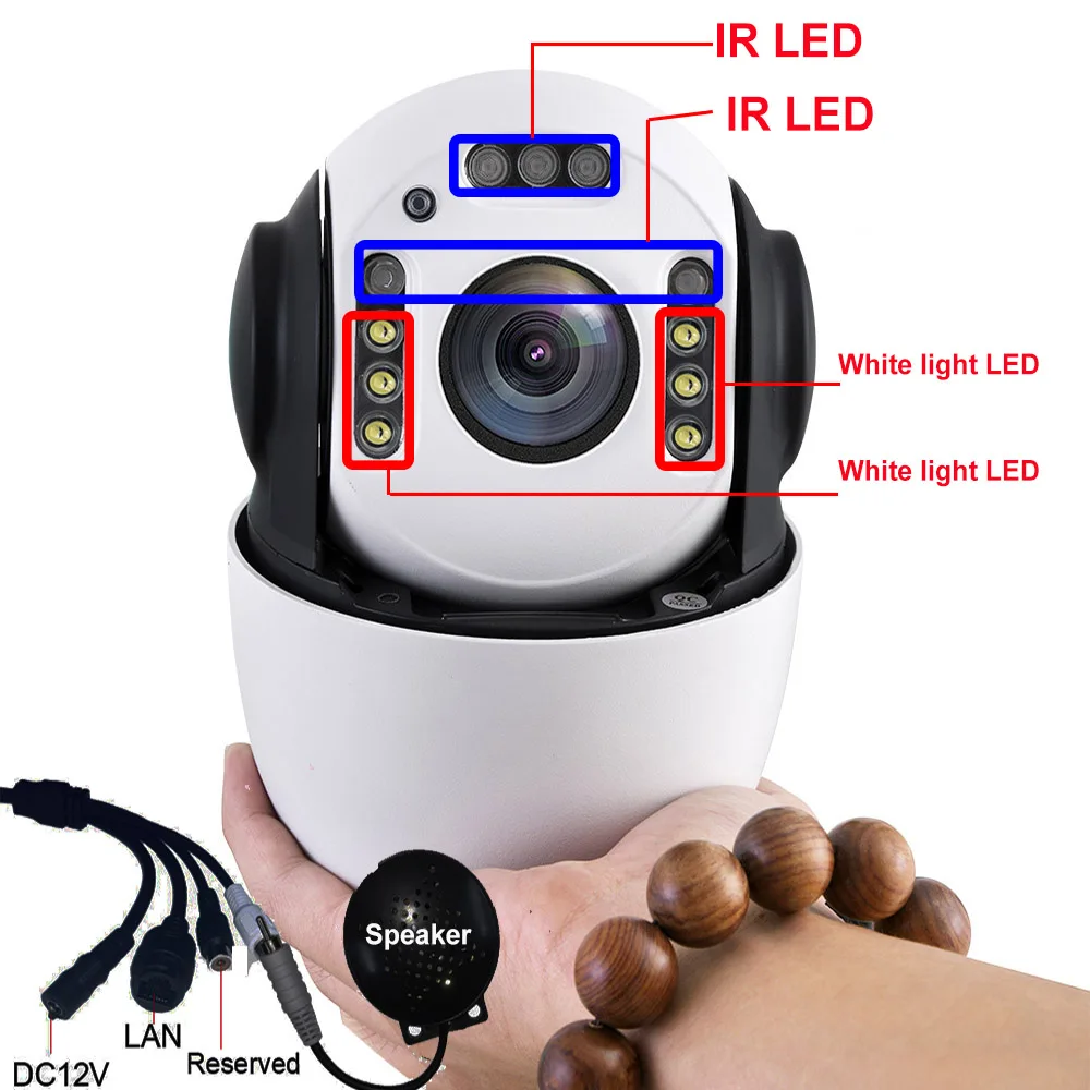 Полноцветный двойной источник светильник, беспроводной 5-мегапиксельный 30-кратный зум, гуманоид, автоматическое отслеживание SONY IMX 335 PTZ, скоростная купольная IP-камера с микрофоном