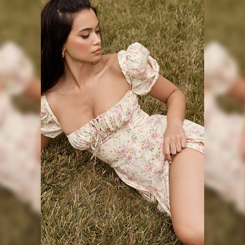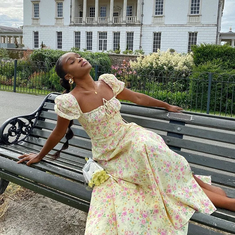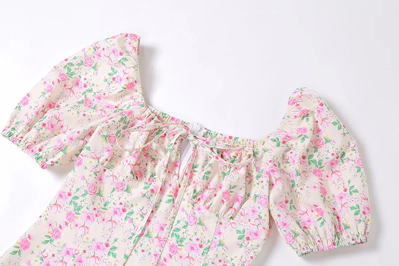 Женское винтажное платье Forefair, элегантное милое платье с короткими рукавами-фонариками и цветочным принтом, с квадратным вырезом, для осени