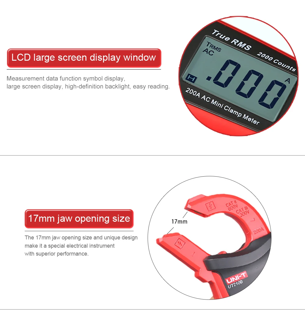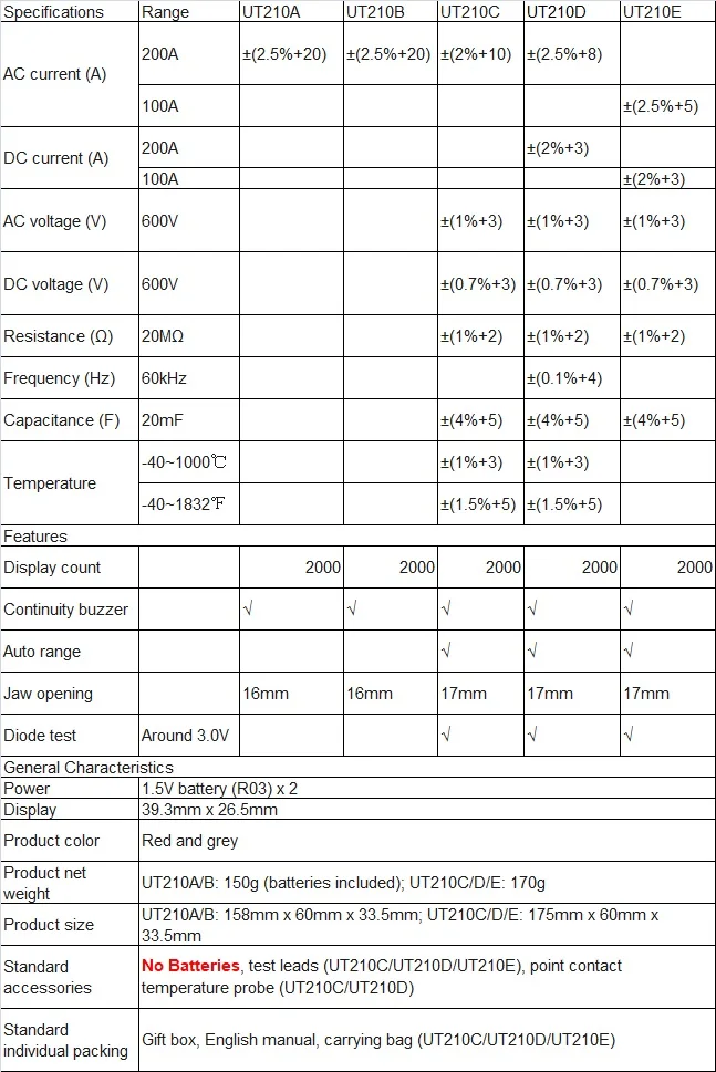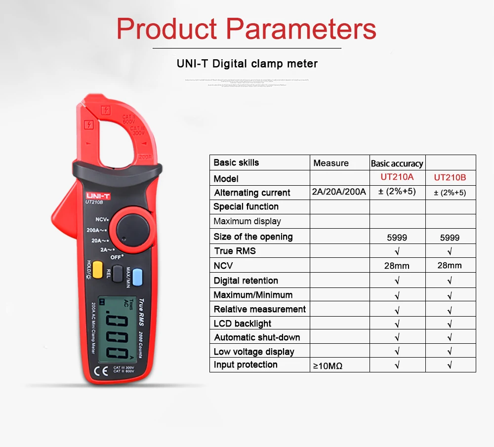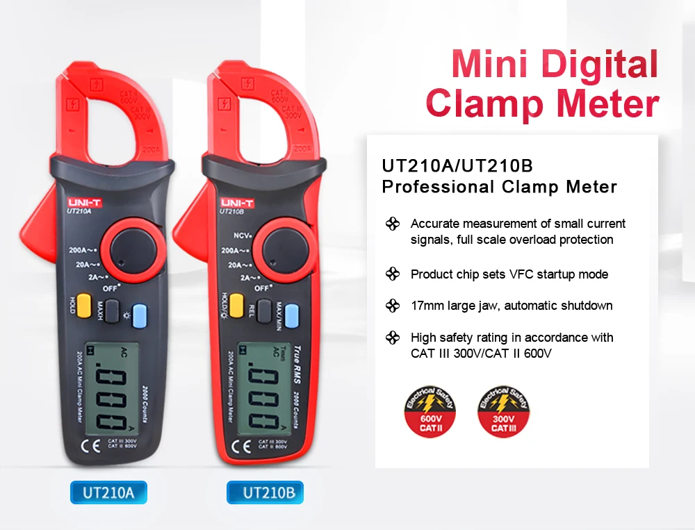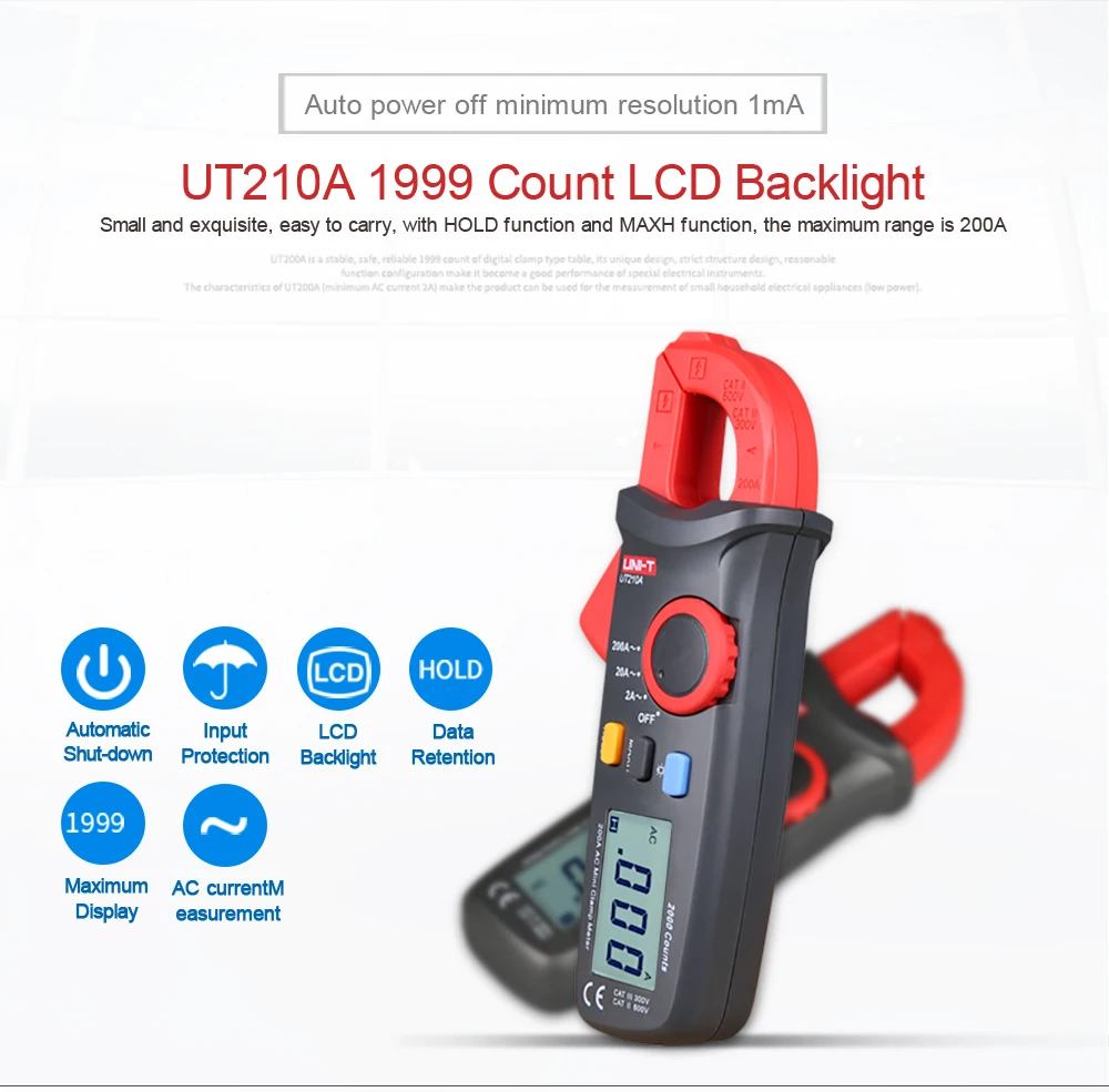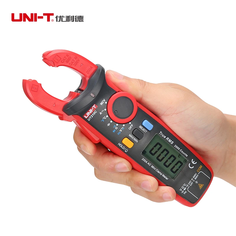 Токоизмерительные клещи UNI-T, 2000 отсчетов, мультиметр, тестер, цифровой мини NCV, автоматический диапазон напряжения, емкости, сопротивления, тестер UT210A UT210B
