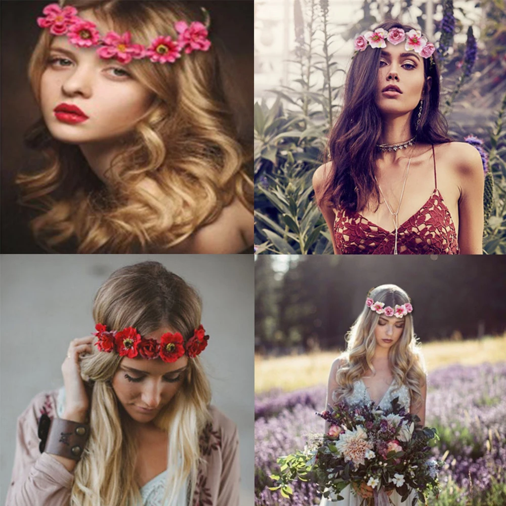 Новогодняя Цветочная корона, модная повязка на голову с цветами для красивых девушек, аксессуары для волос, стильные инструменты для вечеринок