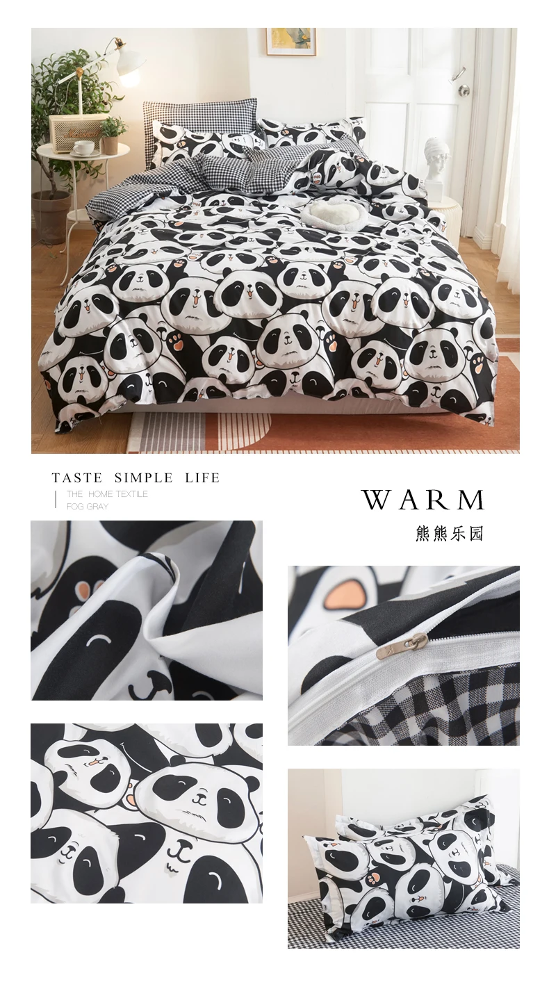 Детский комплект постельного белья с мультяшной пандой, мягкое удобное постельное белье из полиэстера, наволочка, простыня, Комплект постельного белья для студентов