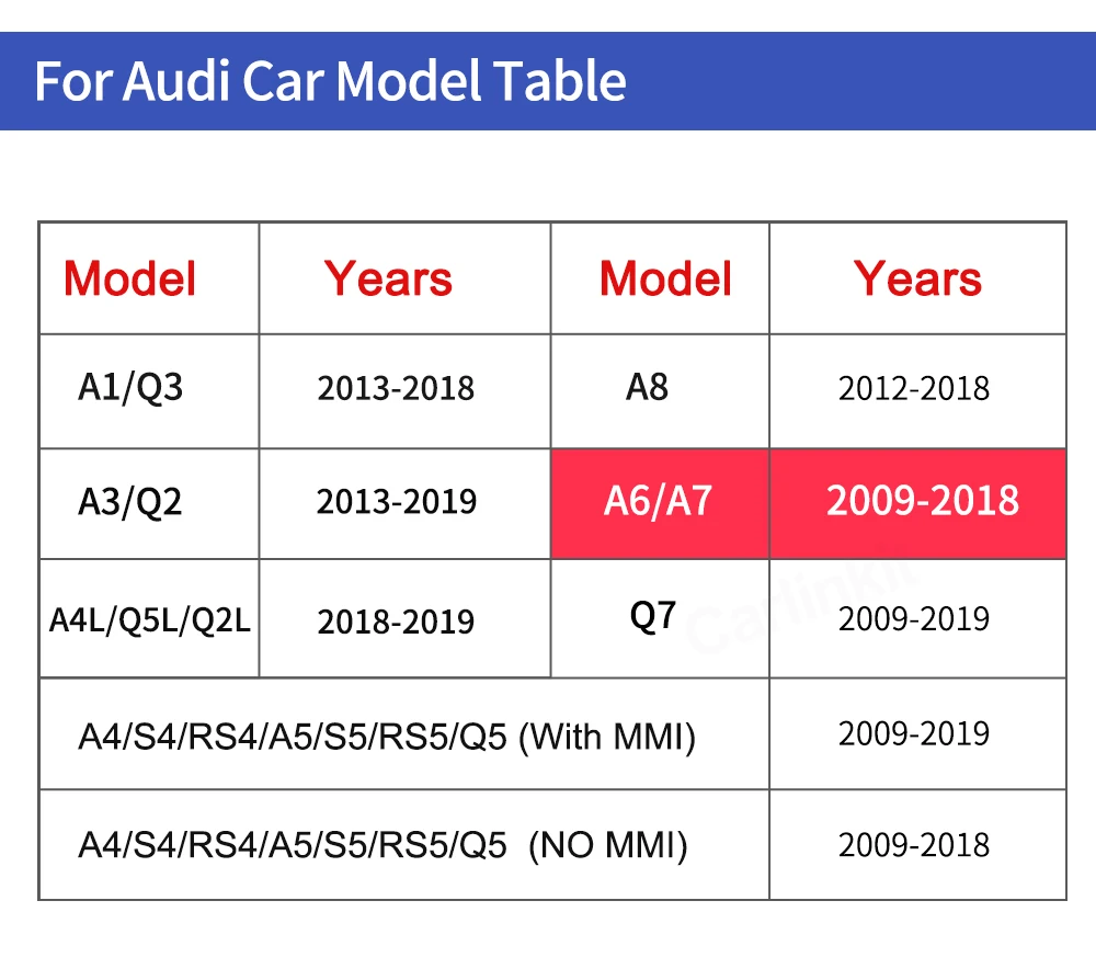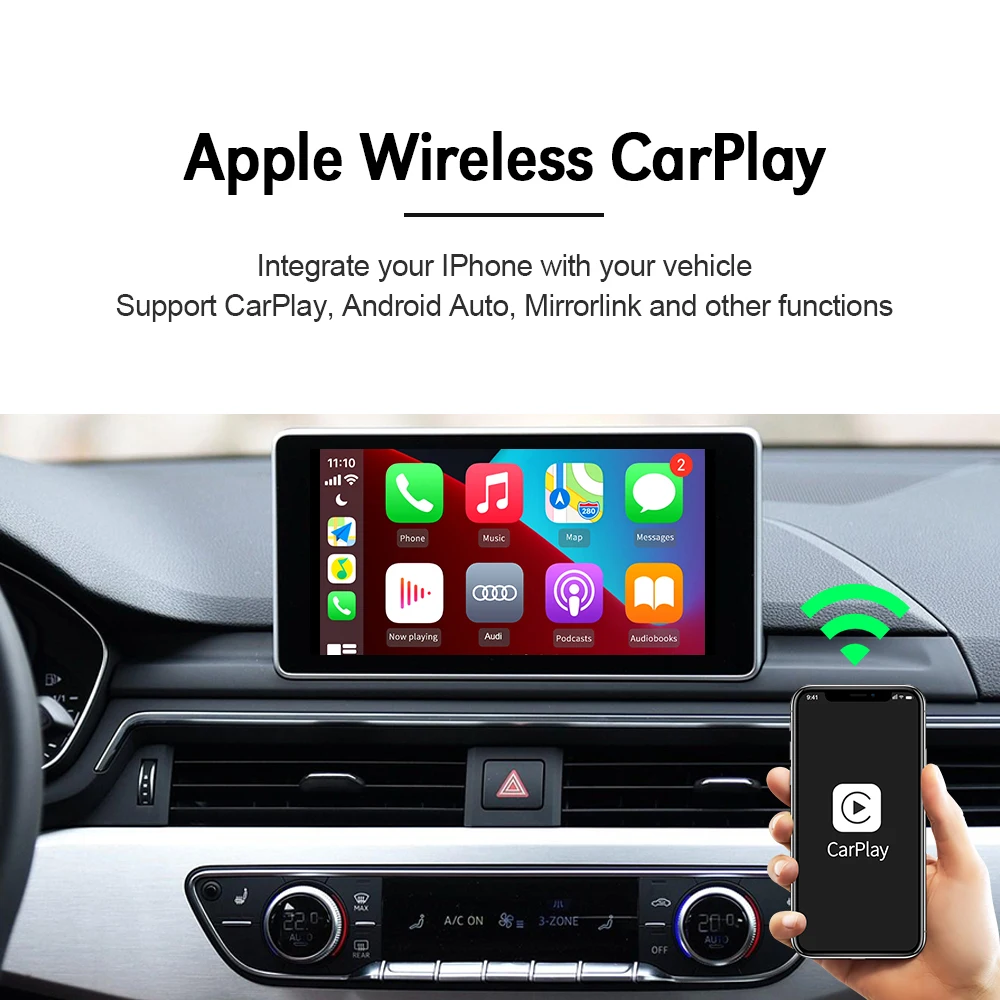 Декодер Carlinkit2.0, аксессуары для AUDI A6 A7 C7 Q7MMI 3G для беспроводного Apple CarPlay Android, автомобильное зеркало с голосовым управлением Airplay