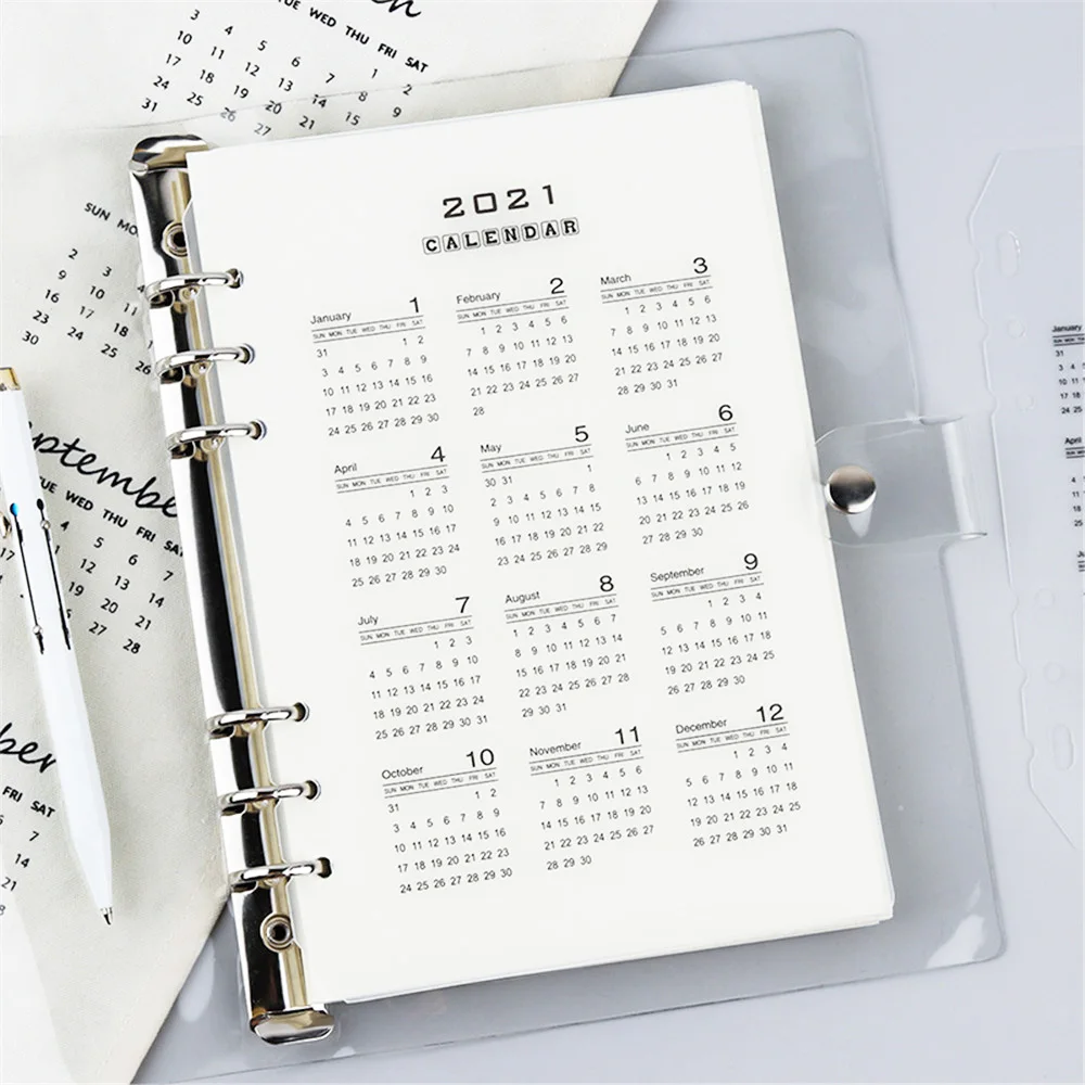 Разделители для блокнотов A5A6, прозрачные, с календарем на 2021 год, 2 шт.