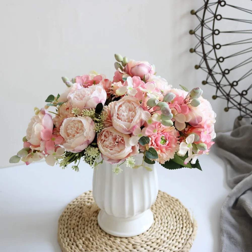 Лучшие продажи, красивые розовые пионы, искусственные шелковые цветы, маленький белый букет, домашние вечерние, Зимние Свадебные Декоративные искусственные цветы