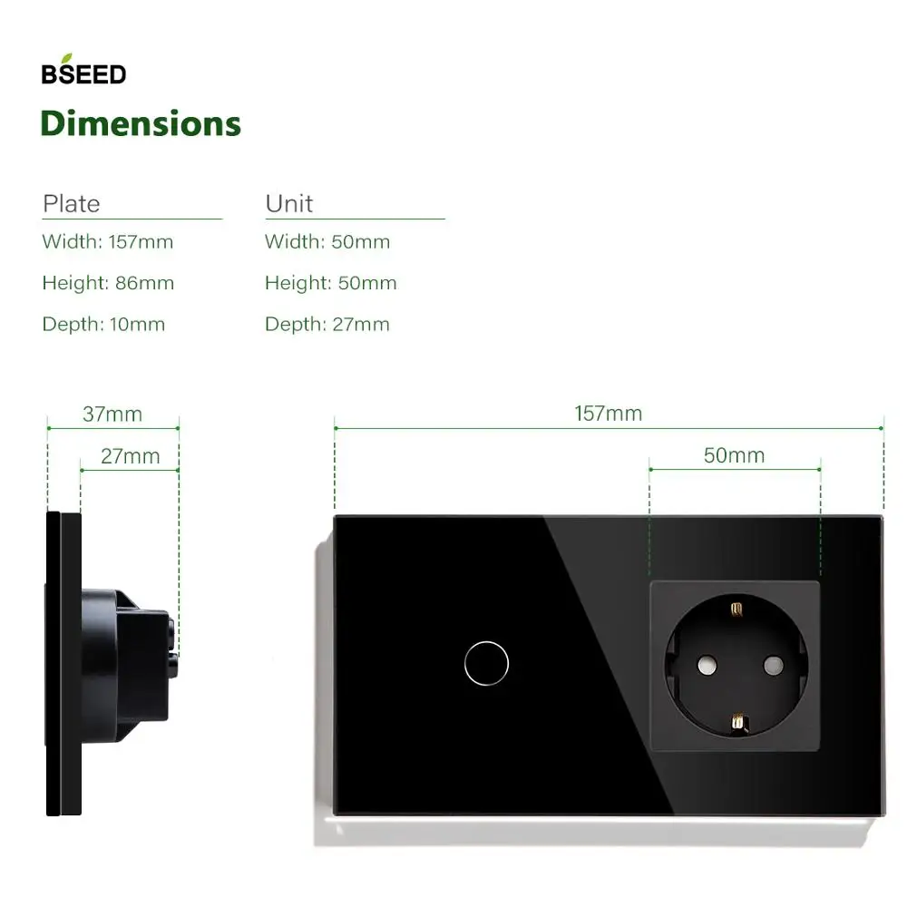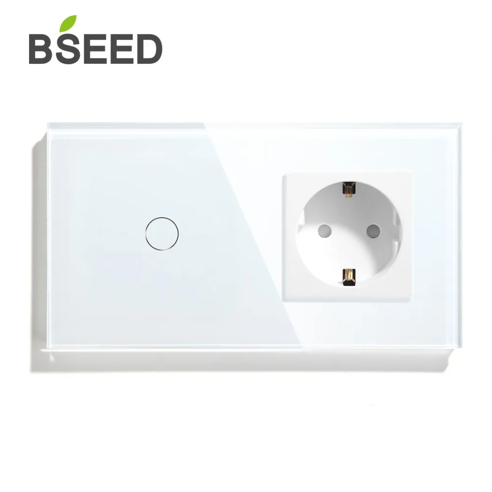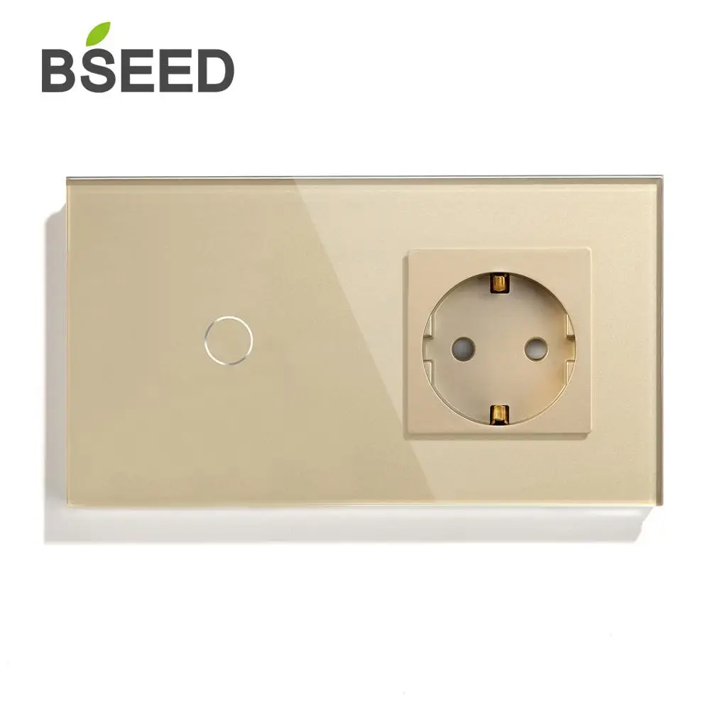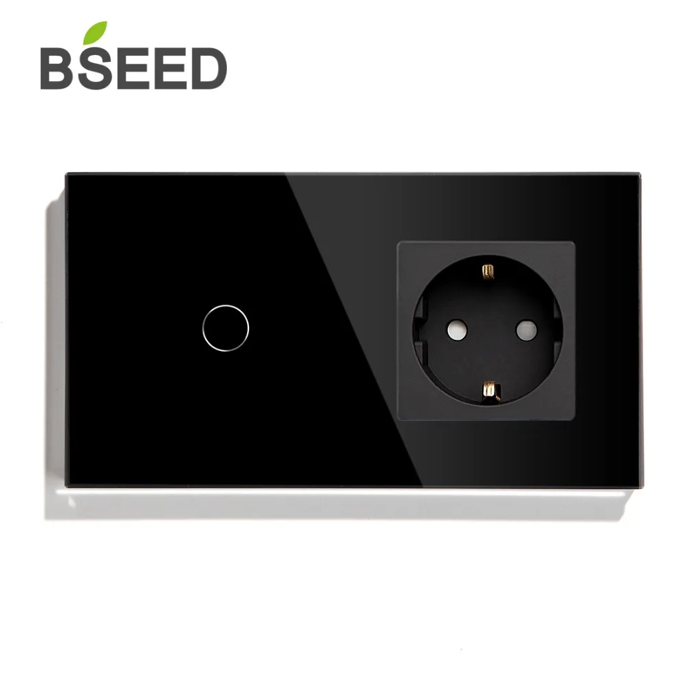 BSEED сенсорный выключатель, 1 банда, 1 способ, 2 способа, с европейской стандартной розеткой, черный, белый, золотой, Кристальное стекло, панель, переключатели 16A