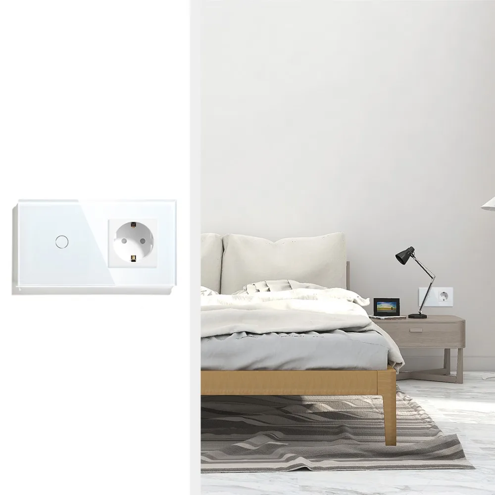 Сенсорный выключатель BSEED, 1 клавиша, 1 канал, 2 канала, розетка европейского стандарта, переключатели из черного, белого, золотого хрустального стекла, 16 А