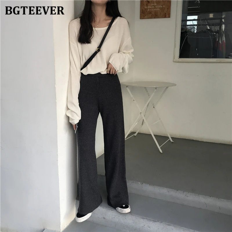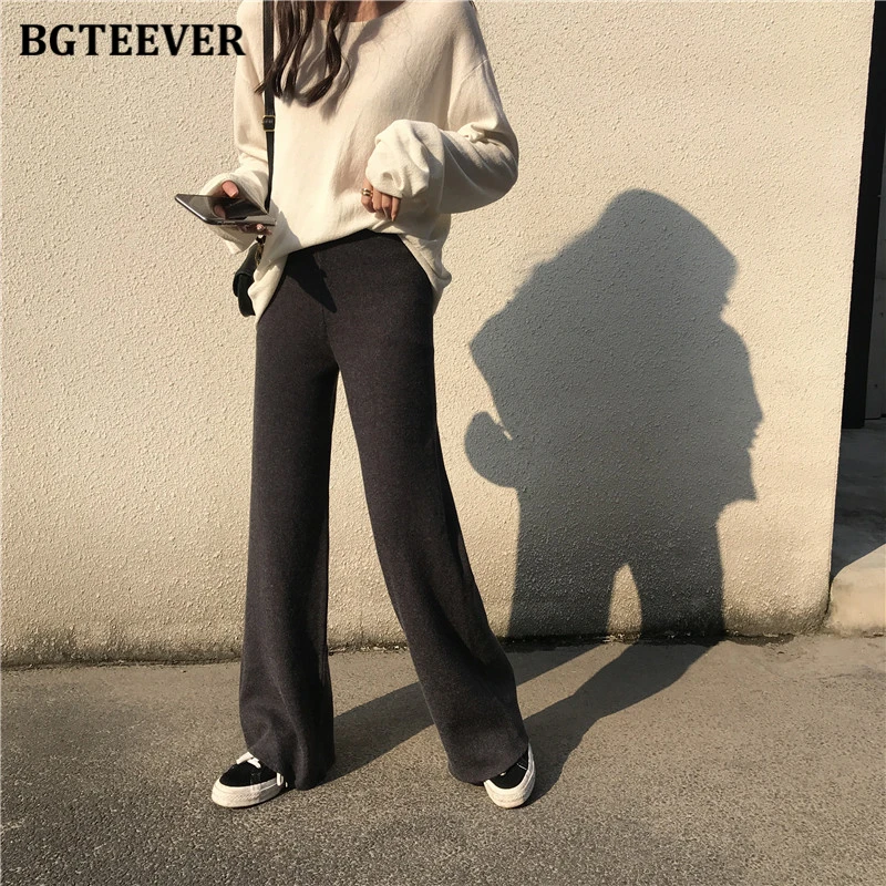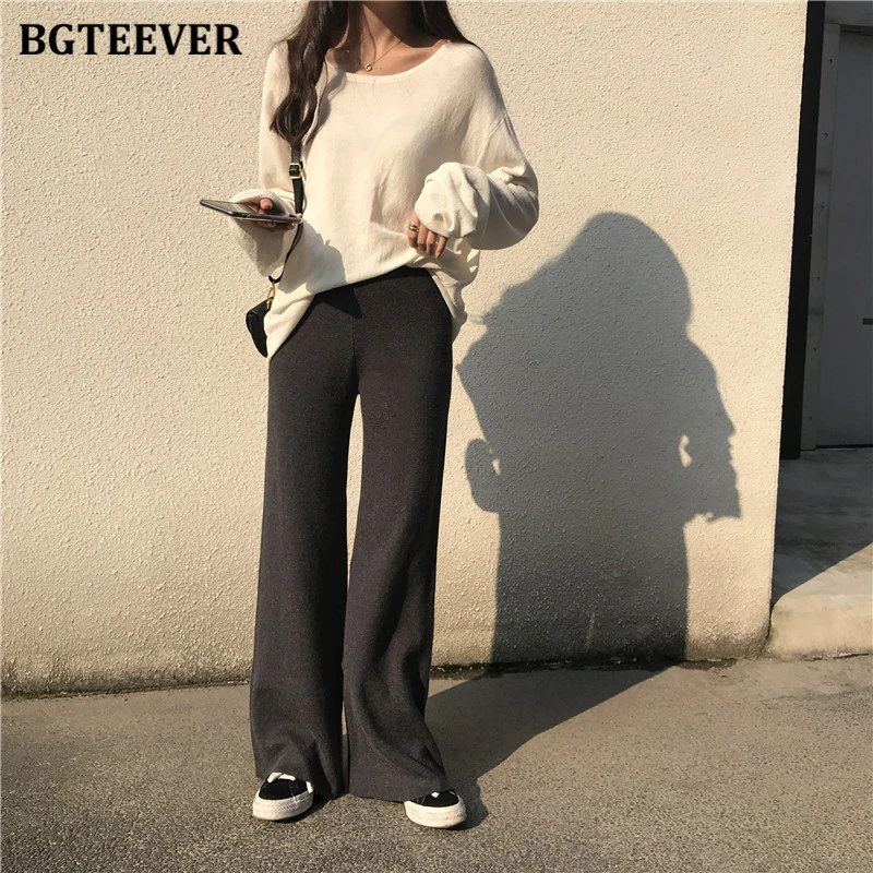 Брюки женские длинные вязаные BGTEEVER, с эластичной талией, на осень и зиму, 2021