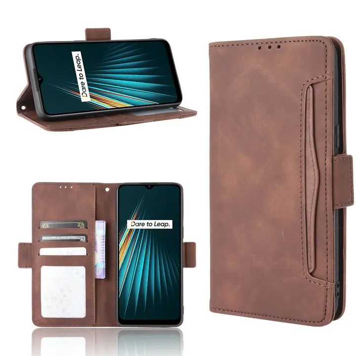 Роскошный кожаный чехол-книжка Realmi 7 5G с отделением для карт, ч...
