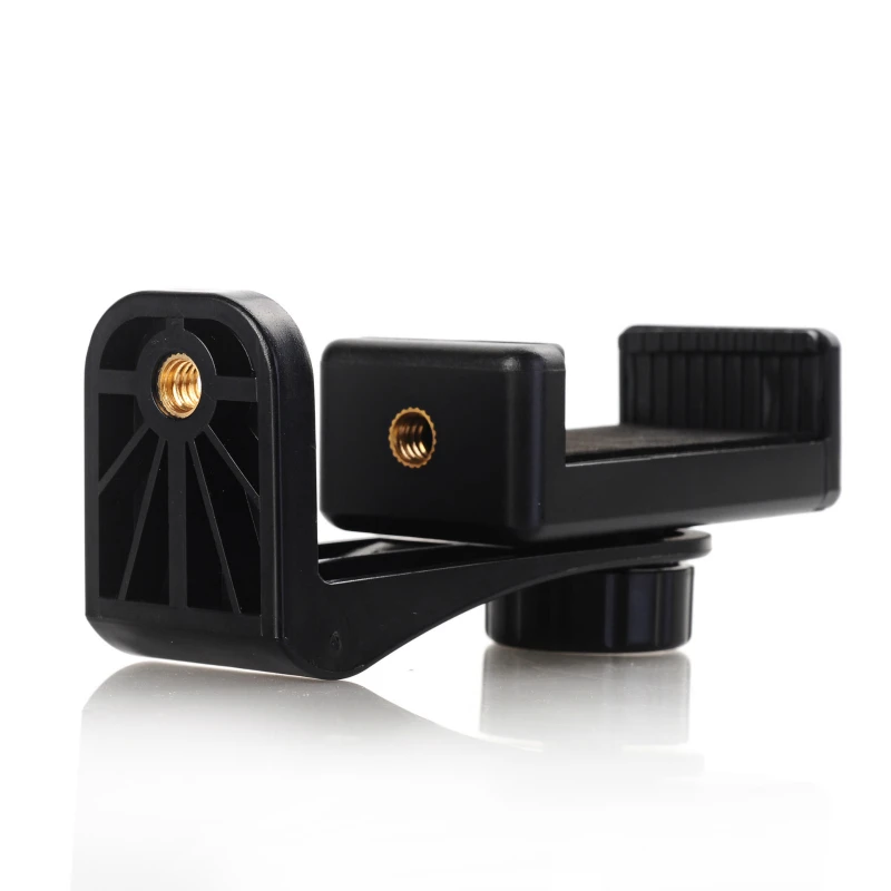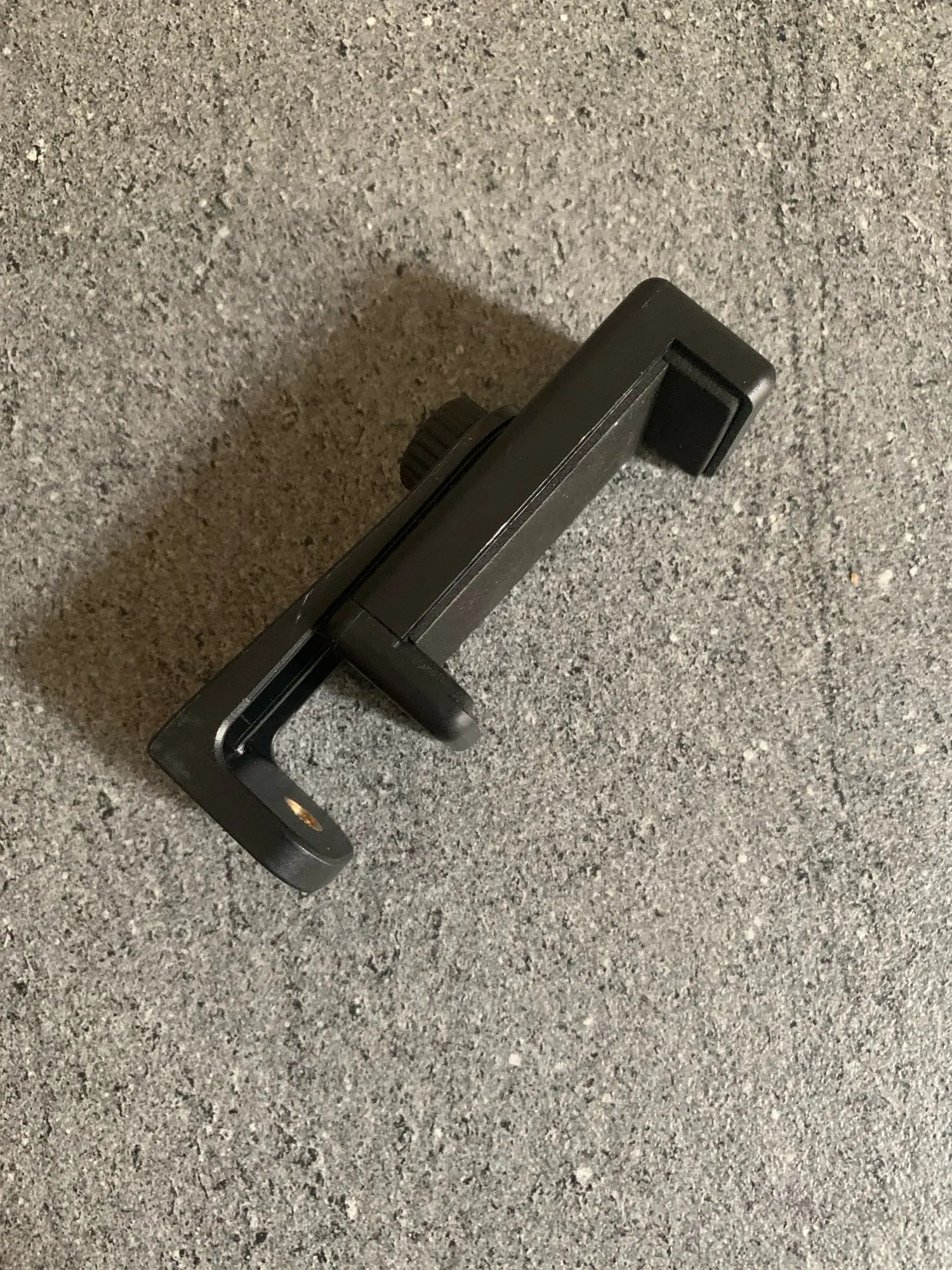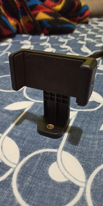 Как фото. Идеально подходит для моего штатива, также для моего мобильного телефона (s10e), его идеальный, но я думаю, что для большего размера мобильного телефона не нормально, может быть, не работает.