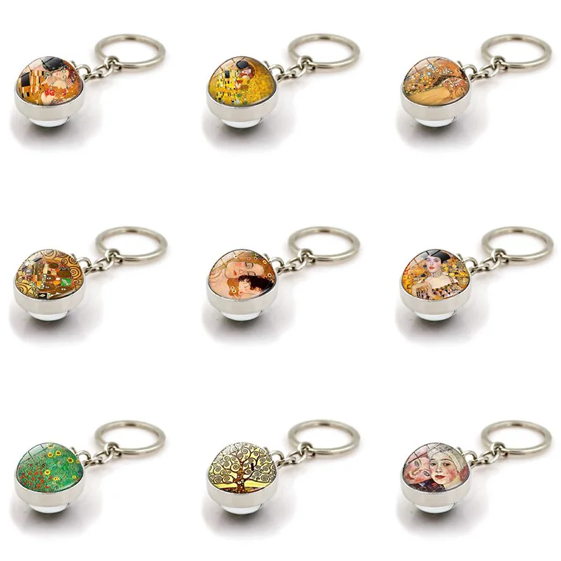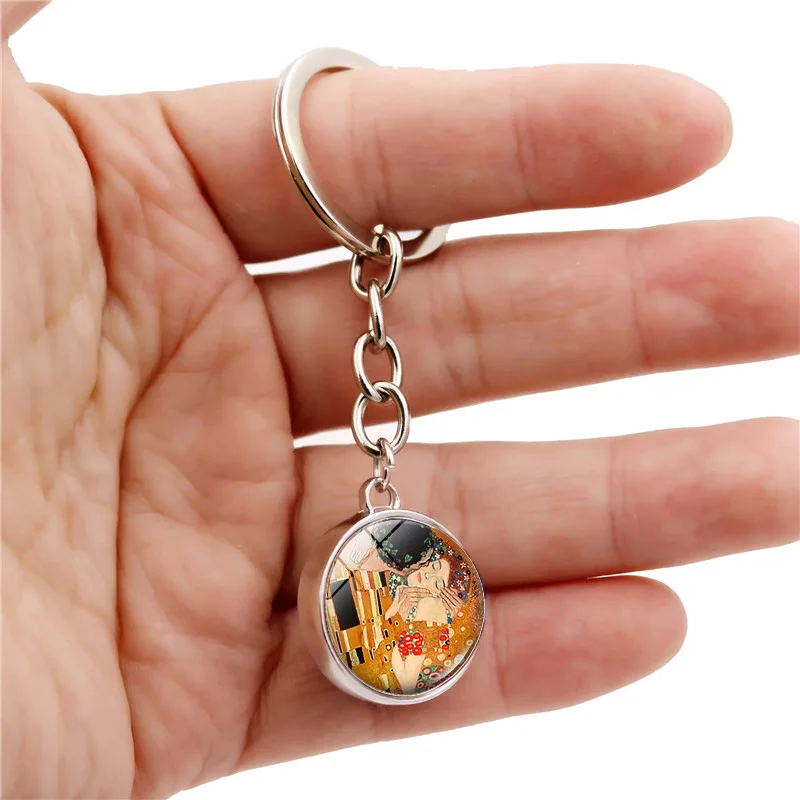 Новый брелок Густав Климт поцелуй Климт художественное изображение стеклянный шар цепочка, стекло, Кабошон стеклянный кабошон кулон металлический брелок для подарка унисекс