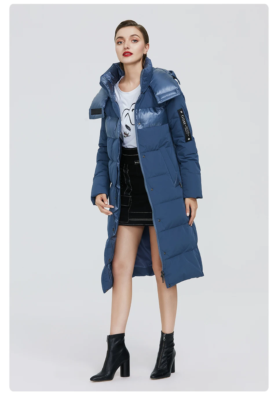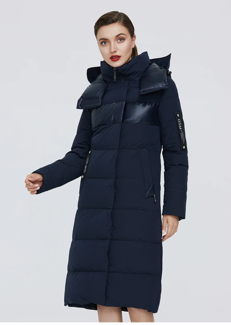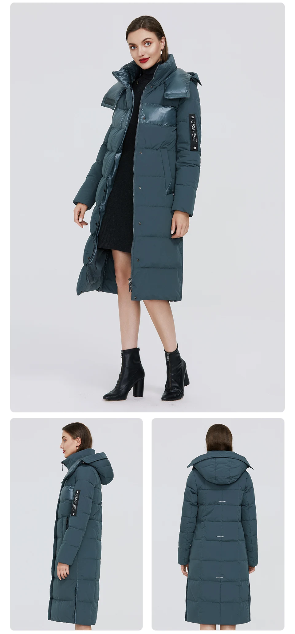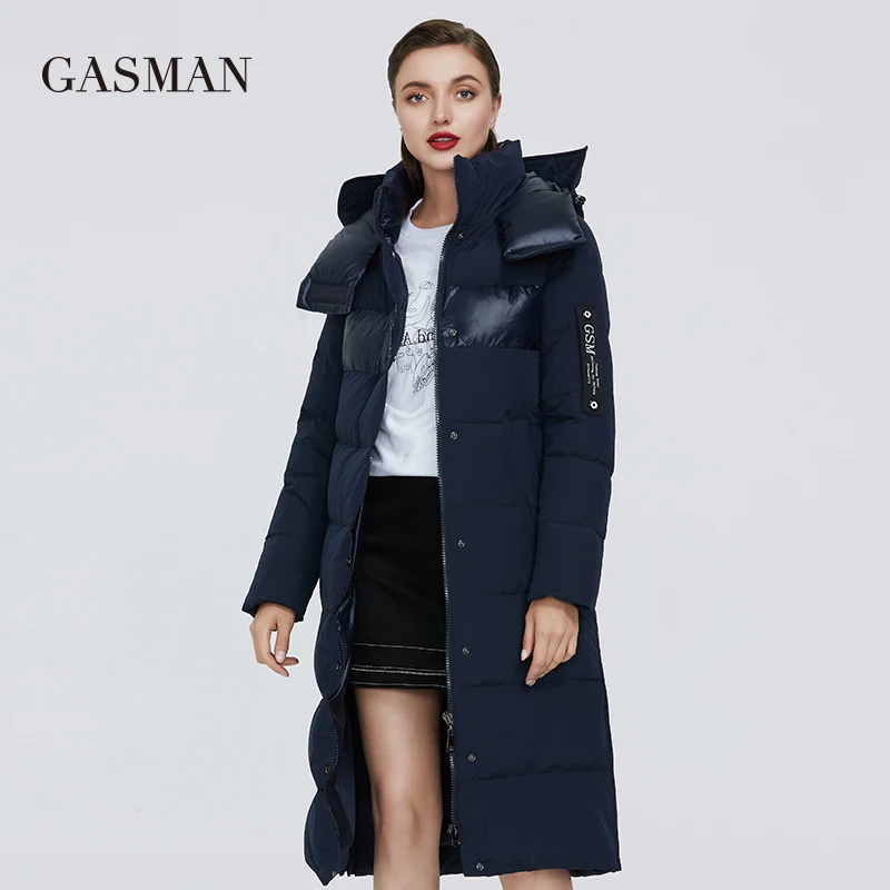GASMAN Женская теплая парка с капюшоном черная утепленная куртка в стиле пэчворк 003