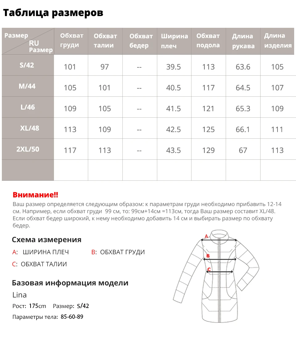 Великолепное пальто! Очень понравилось! Равномерно и очень плотно набитое, с отличной фурнитурой и качеством исполнения. Присоединяюсь ко всем восторженным отзывам тут. Брала XL на 99/72/100. Сомневалась, боялась, что будет большое. Село отлично, как рекомендует продавец, в запасе примерно 12-14 см. Так что таблица точная. Но вот одевать под низ толстые кофты точно не буду-оно очень тёплое. Спасибо продавцу!