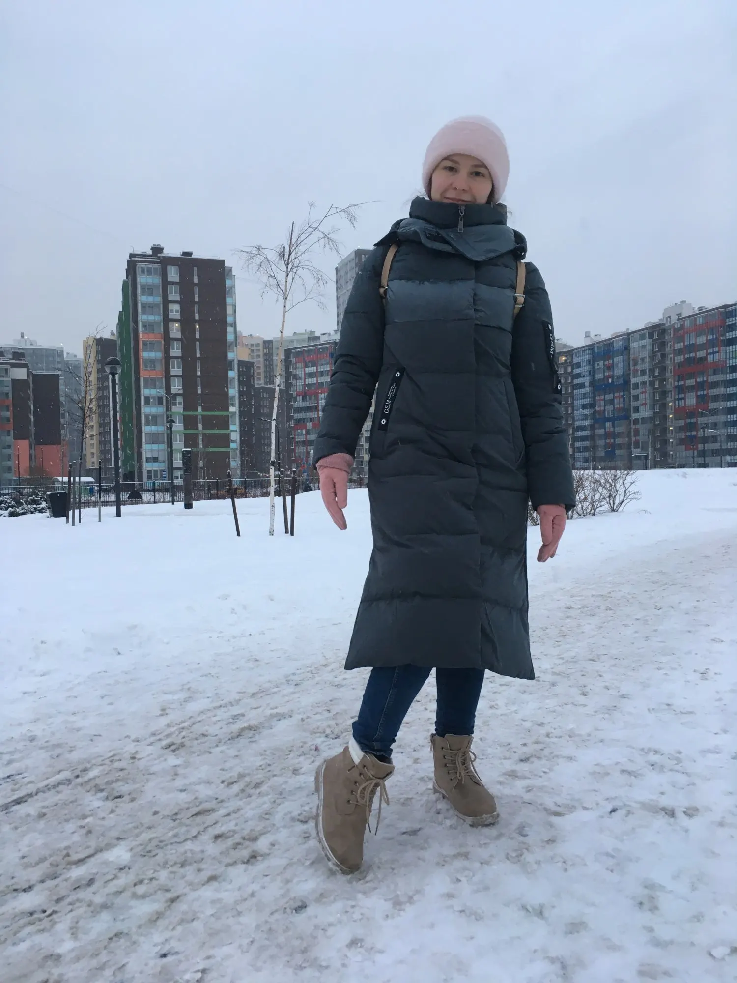 Как только достала из пакета, оно "надулось", стало объемным, сразу видно что зимнее. Утеплитель - синтетический лебяжий пух, мне очень нравится этот наполнитель, во-первых он очень теплый, а во-вторых очень быстро сохнет. Размер взяла 46, могу сделать вывод что изделие полноразмерное, т.к. пальто село отлично, единственное с толстой кофтой в рукавах может быть узко, но на практике такая поддева не нужна, вещи теплые, расчитанны до -30°С. Пальто "А"- силуэта, с продуманной прострочкой, поэтому не выглядишь как в попадья в балахоне, фасон универсальный, хорошо и с сапогами на каблучке, так и со спортивной обувью. Отдельно хочется отметить капюшон- он объемный, теплый, укладывается вокруг шеи модным толстым воротом, единственное не отстегивается. Есть сбоку два кармана на молнии, внутри они утеплены мехом. Замок показался надёжным, ход легчайший. Рукава можно подвернуть, есть ветрозащитные манжеты. Рекомендую!