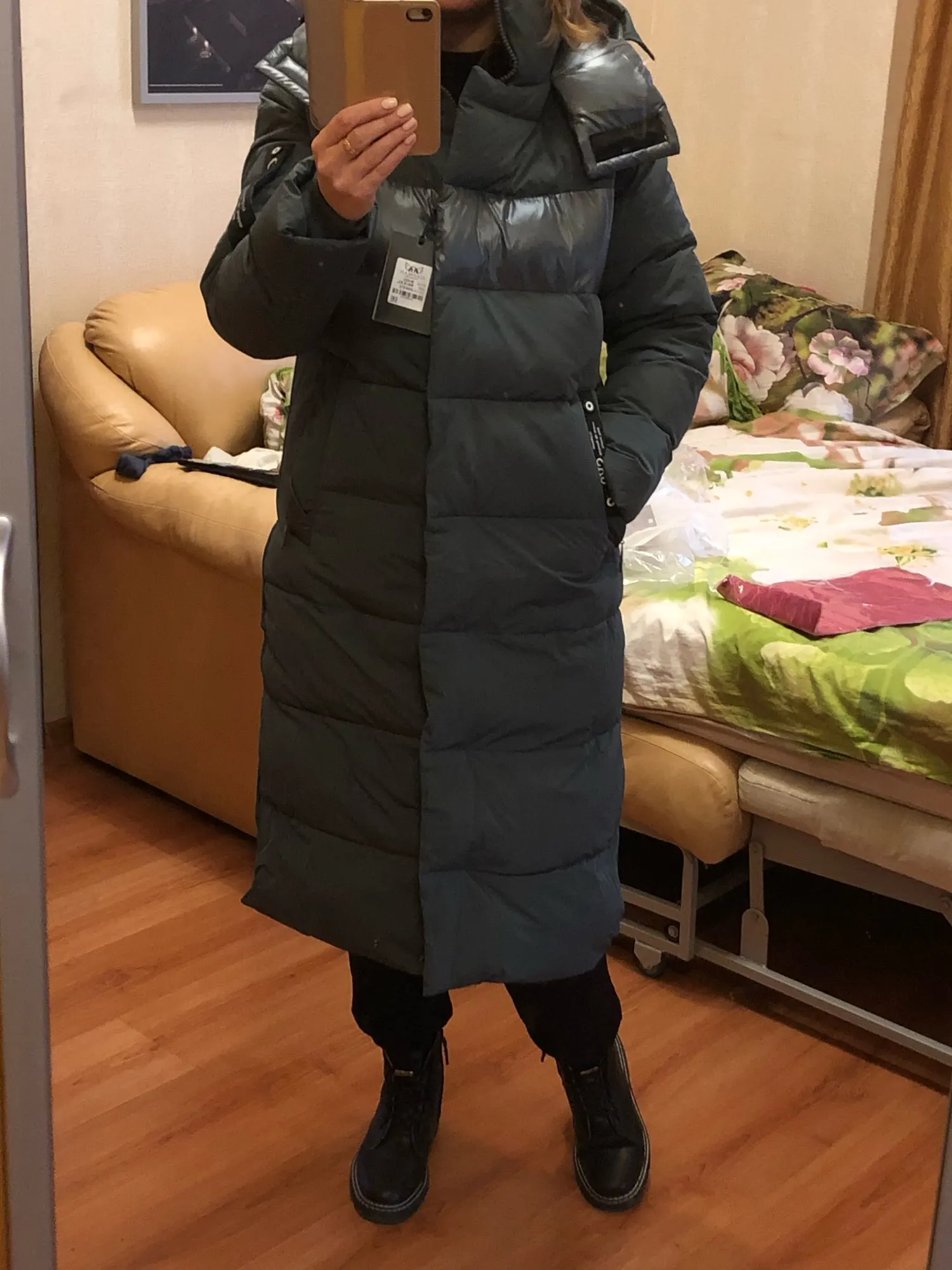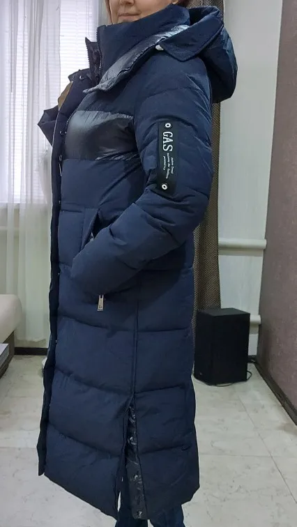 Отличная удлиненная куртка/пальто! На наш 48-50 взяла XXL. Села хорошо. Рост 176 см- колени прикрыты. Фурнитура добротная, швы качественные, нитки не торчат, постороннего запаха нет. Очень хорошо закрыта шея. Капюшон глубокий, жаль, не отстегивается. Есть внутренний нагрудный карман и два глубоких боковых кармана на молнии. Спереди молния двойная- при необходимости можно чуть расстегнуть снизу ( быстрая ходьба, бег). Для этой же цели низ пальто по бокам на кнопках. Очень понравилась. Дополню отзыв после испытания в мороз.
