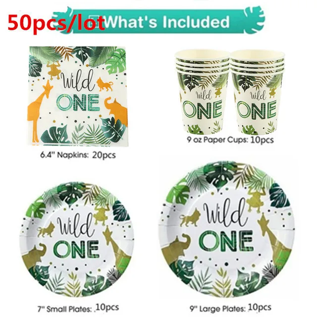 Скатерть с изображением животных в стиле сафари, джунглей, 20 шт. в комплекте, 1 комплект, соломенная скатерть для кружки, тарелки, салфетки на 1-й день рождения