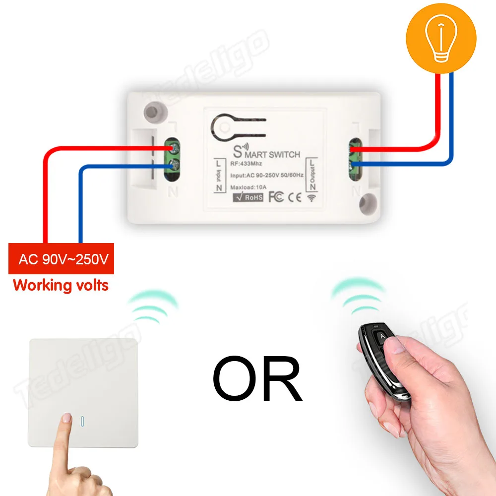 Пульт дистанционного управления, 433 МГц, 90-250 В, 10 А, 1 канал