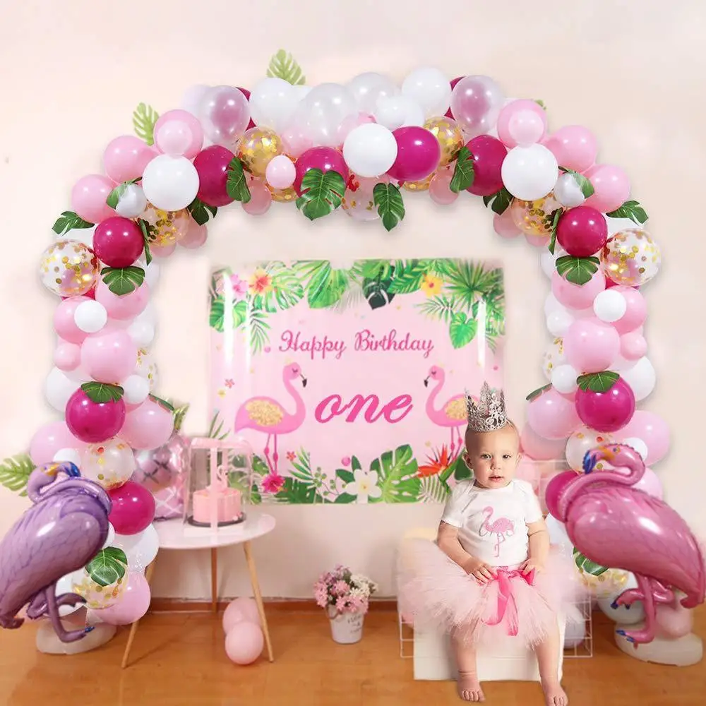 Гирлянда с зелеными воздушными шарами, латексный сафари, джунгли, Гаваи, фламинго, праздвечерние чное украшение для дня рождения, Детский праздник