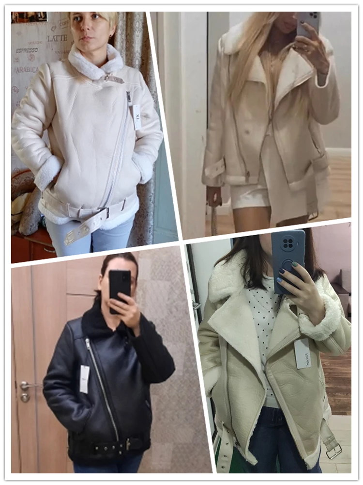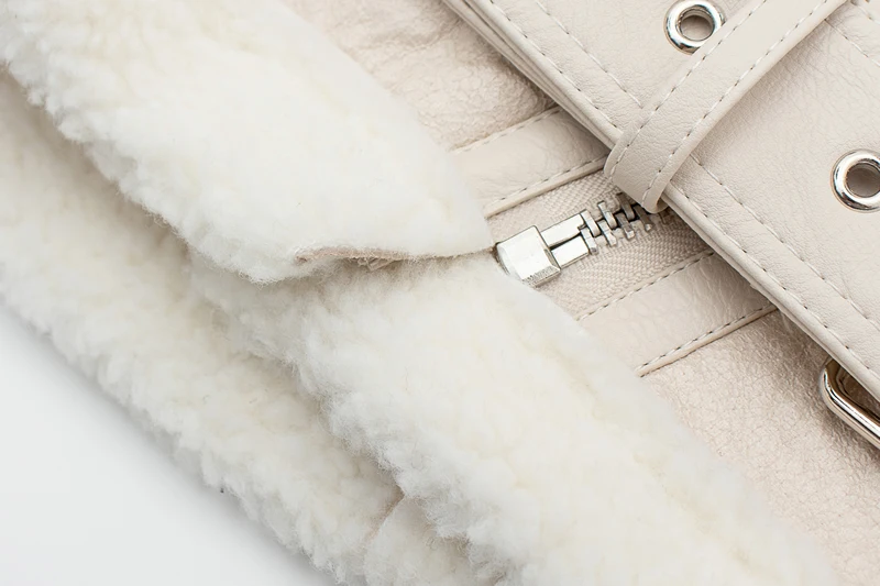 Куртка женская из искусственной кожи с мехом ягненка Ailegogo, зимняя, толстая, теплая, большого размера, на молнии, с поясом