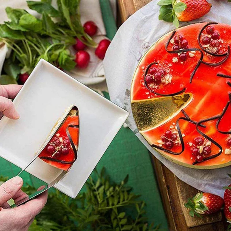 Цельный нож для торта из нержавеющей стали, резак для кондитерских изделий, изогнутый, в форме листа