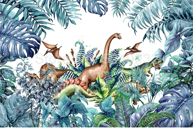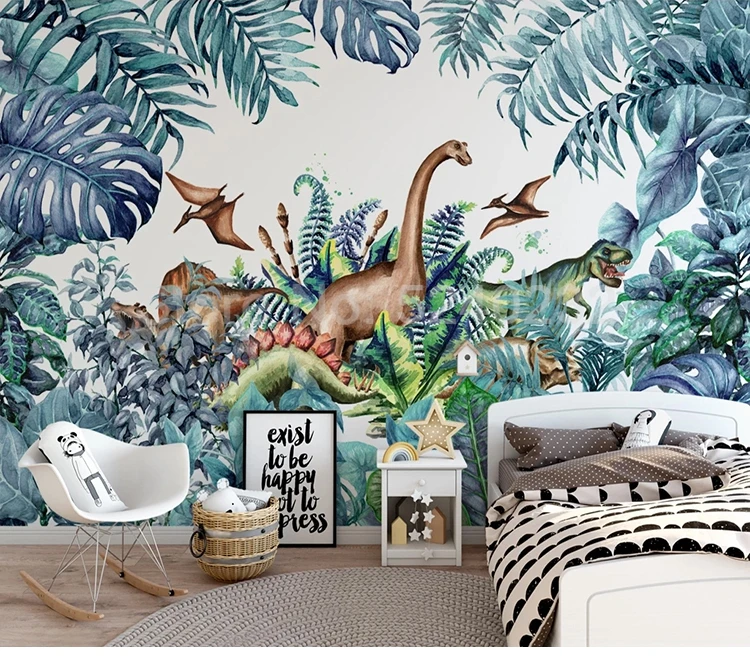 Настенные обои по фото по индивидуальному заказу, 3D Роспись вручную, растения, листья, мультяшный динозавр, настенная роспись для детской комнаты, спальни, Декор, настенная живопись