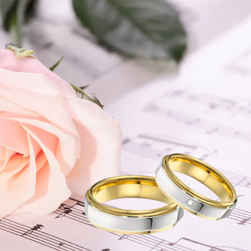 Двухцветные обручальные кольца для мужчин и женщин, обручальные вол...