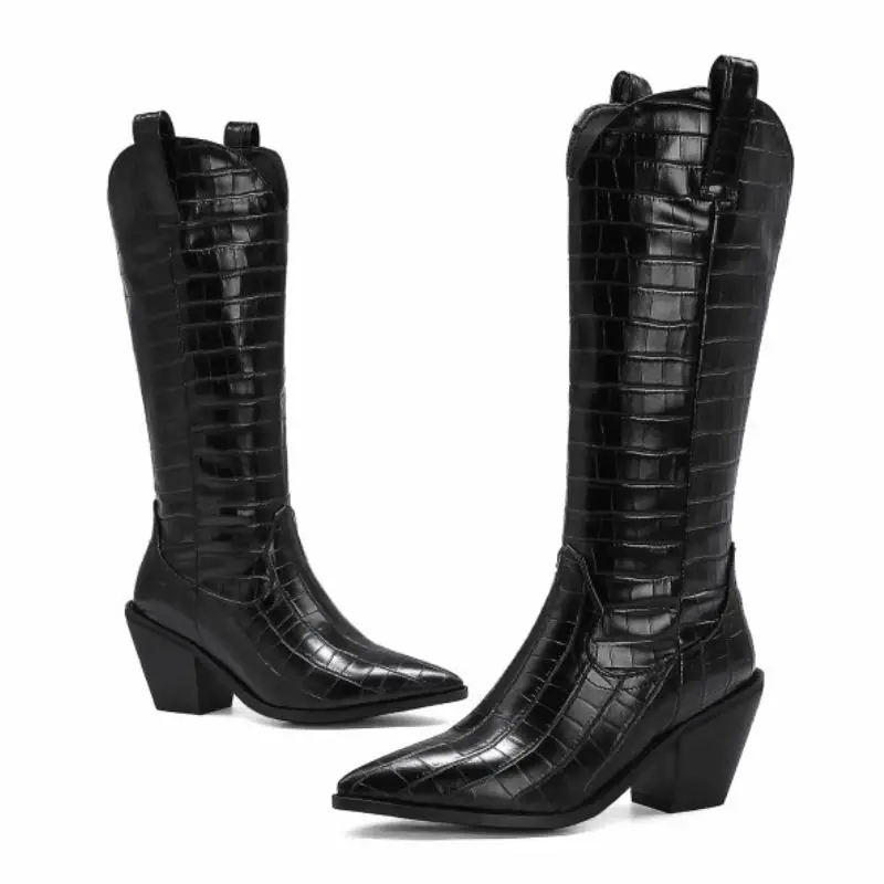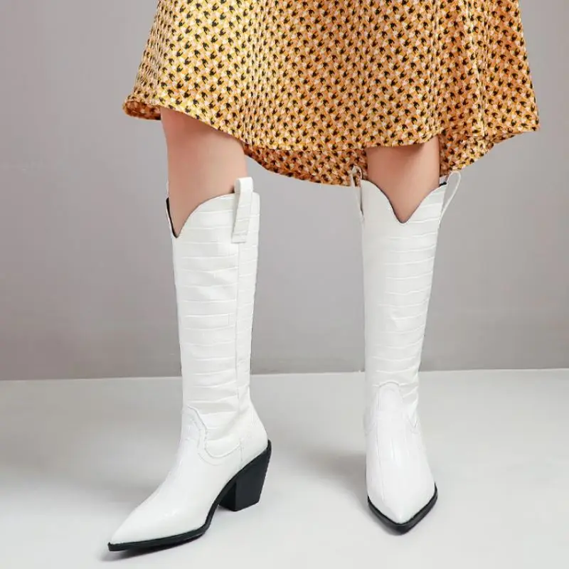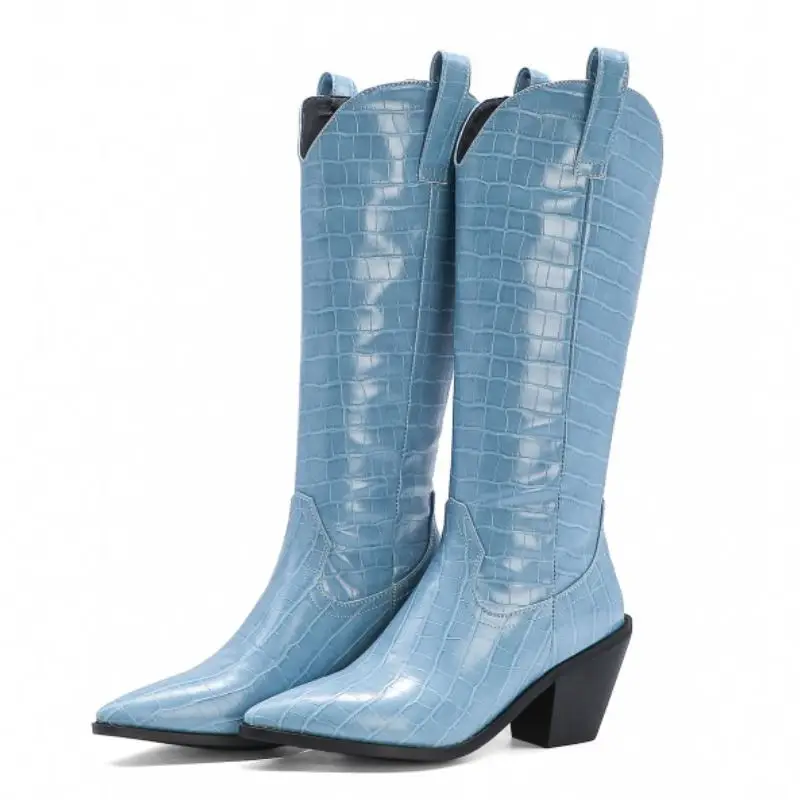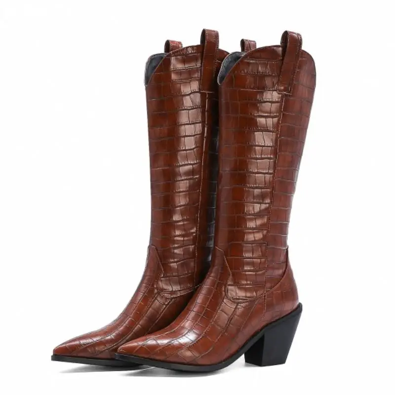 Сапоги женские до колена с острым носком, на высоком каблуке, зимние, размеры 32-43