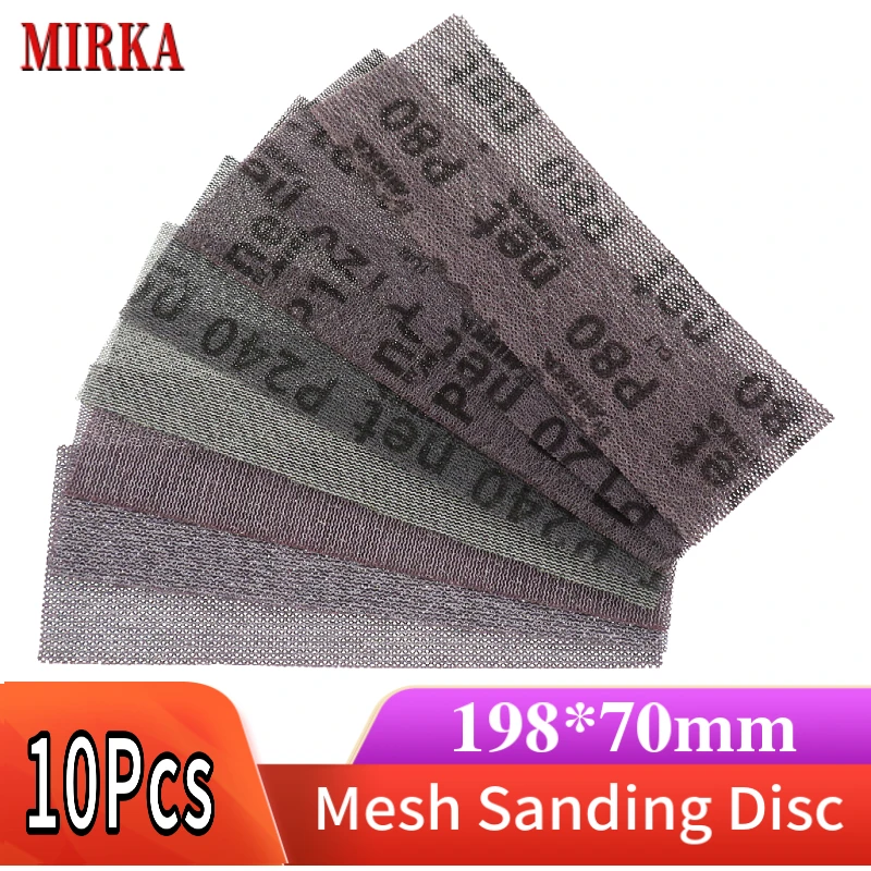 10 шт.198 * 70 мм сетчатые шлифовальные диски без пыли, петля с крючком, антиблокировочная наждачная бумага для сухого шлифования, зернистость 80-320 для дерева, автомобильная полировка