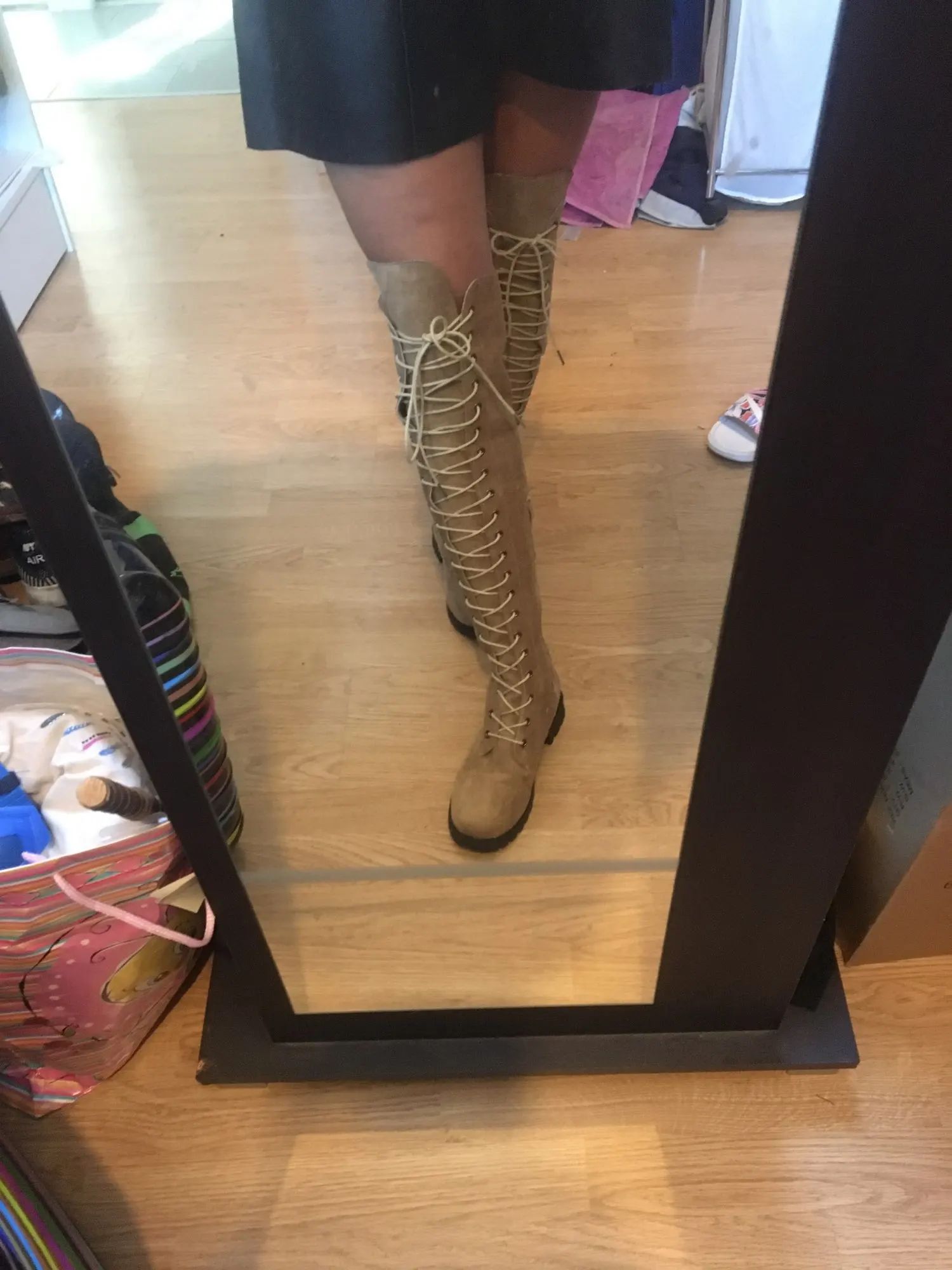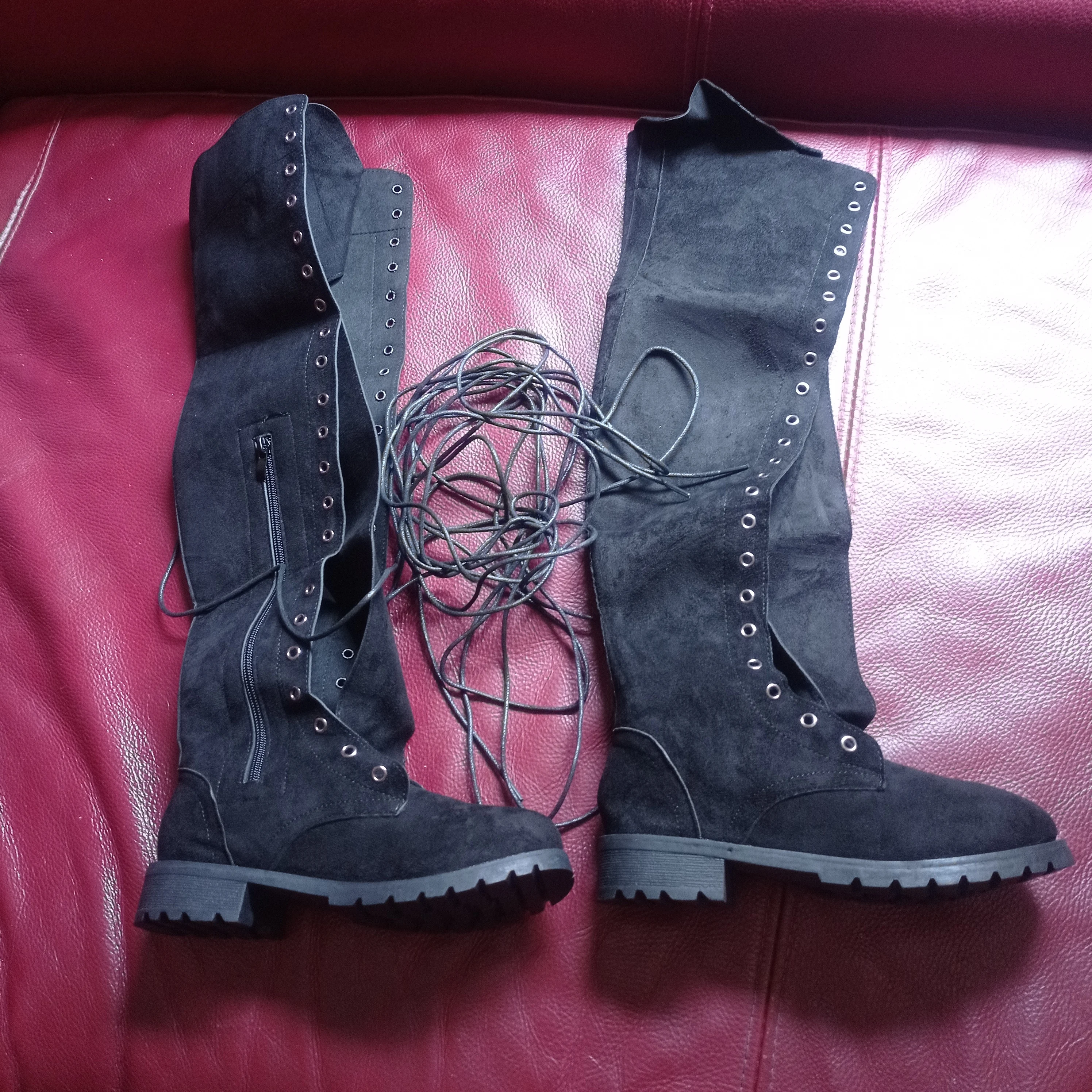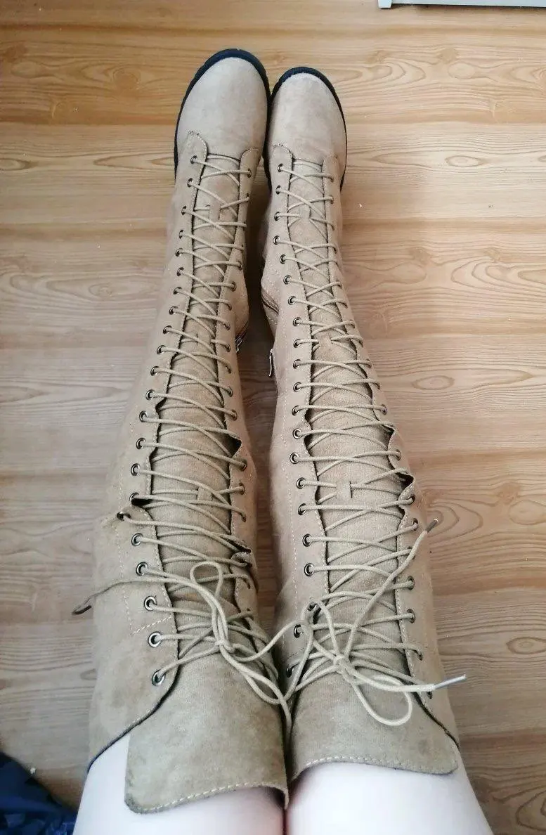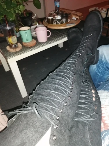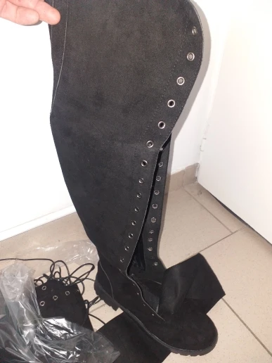 Счастливы! Обувь доставлена очень быстро и хорошо упакована. Небольшая нижняя часть шнуровки должна быть ровной. Прибывает выше колена менее чем на один метр 60.